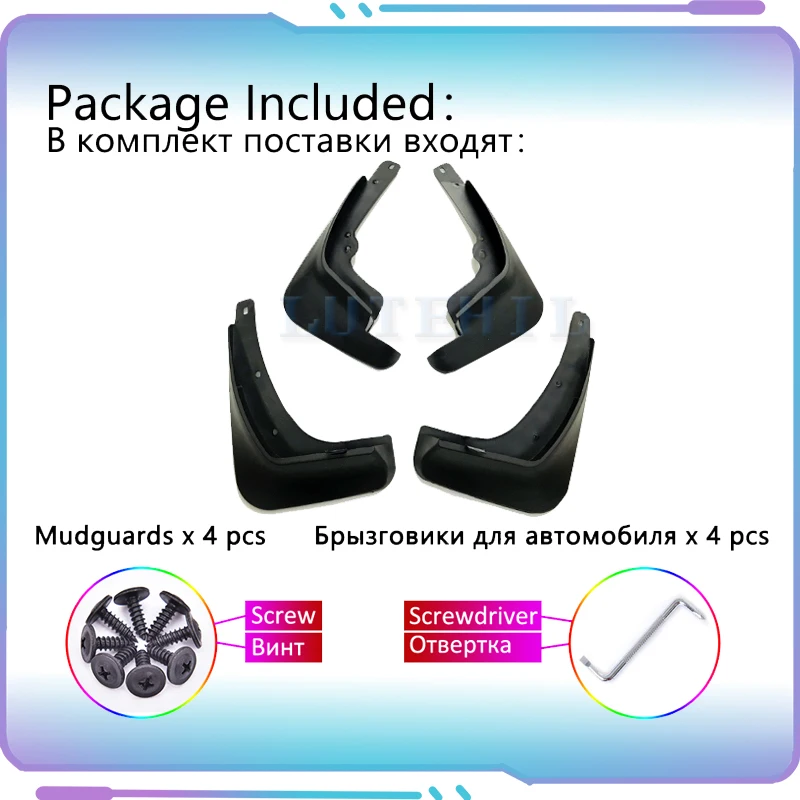 4 брызговика 、 1 отвертка 、 пакет с винтовыми креплениями