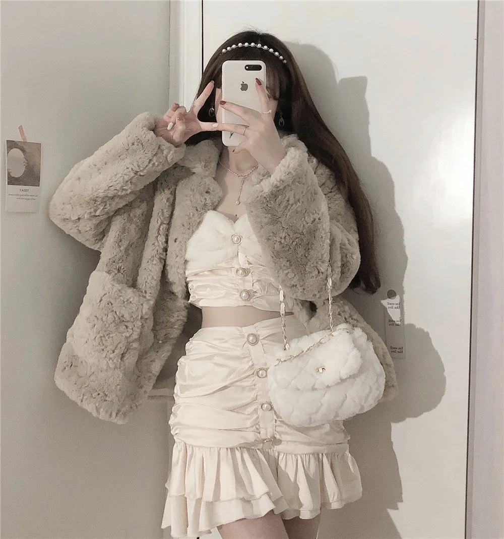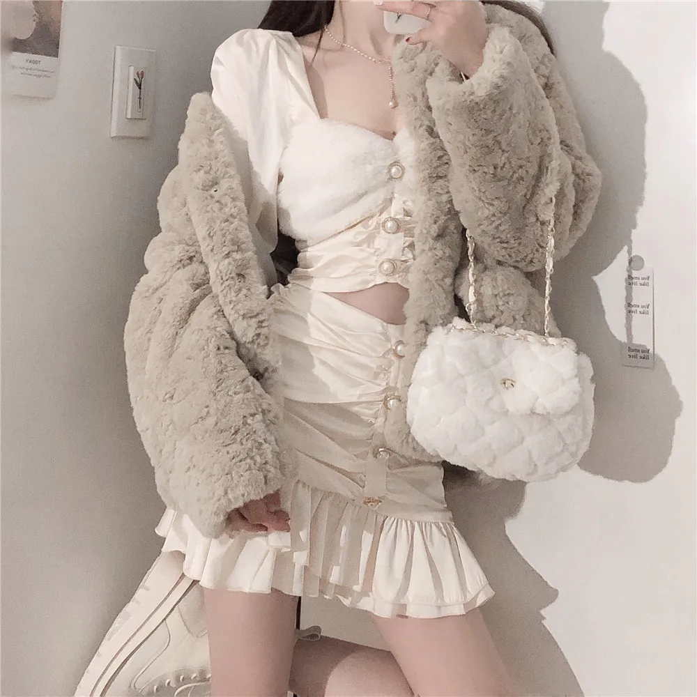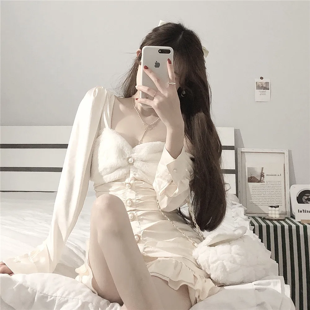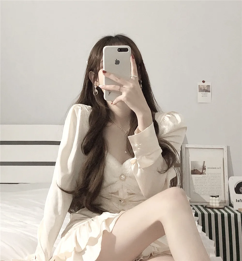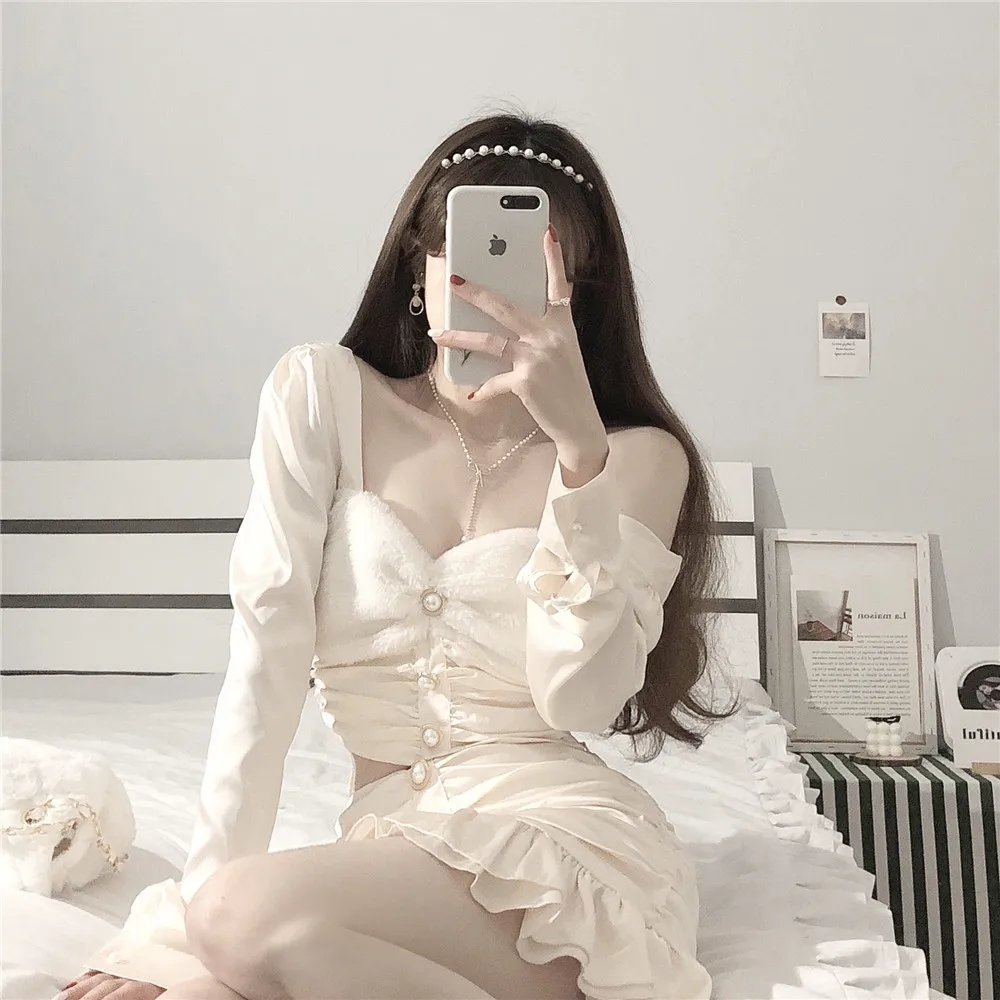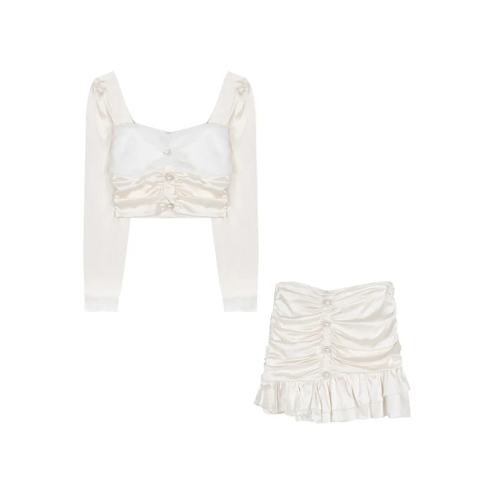 Женский комплект из двух предметов, корейский стиль, рубашка с длинным рукавом и юбка, белые пуговицы, Y2K, элегантная юбка, весна 2021