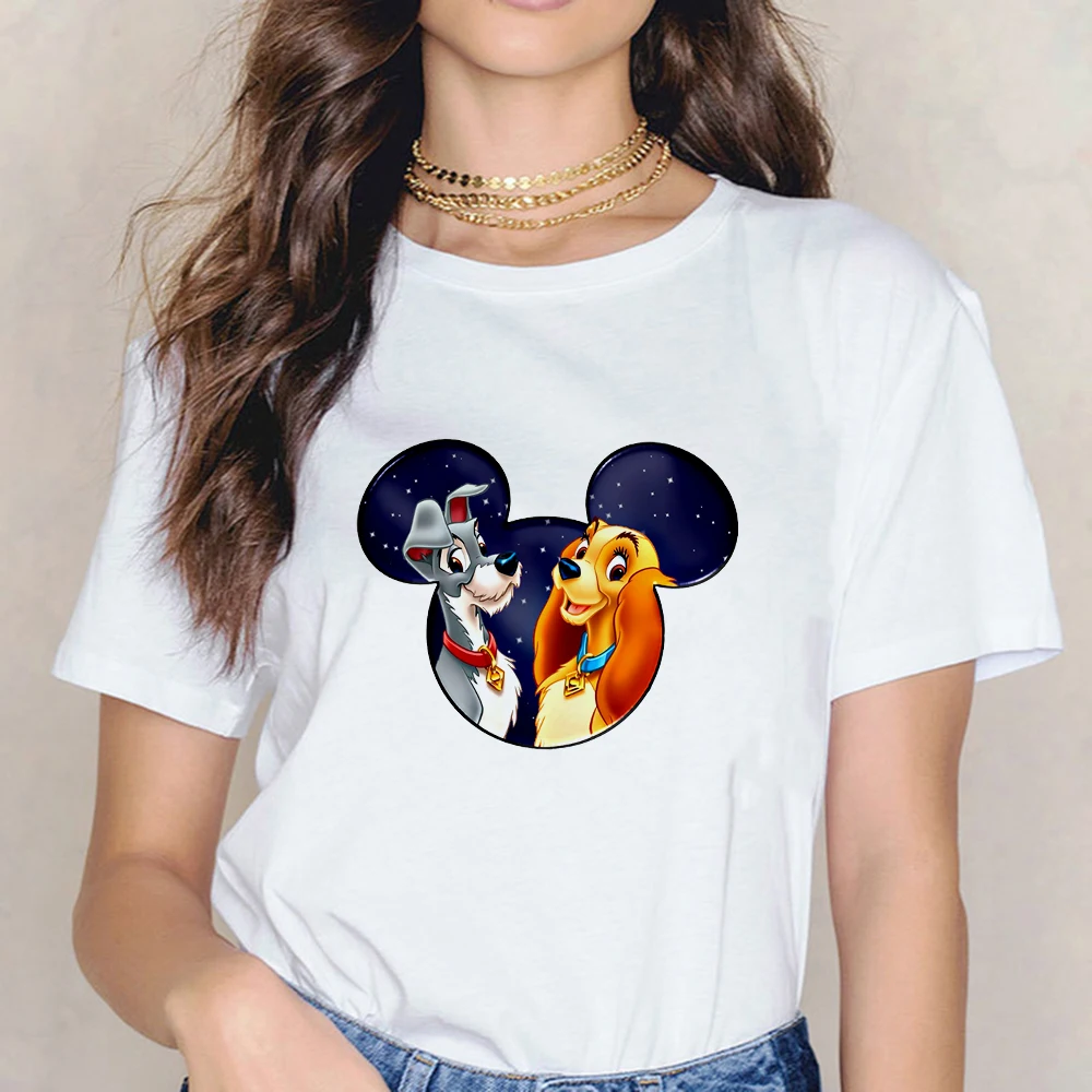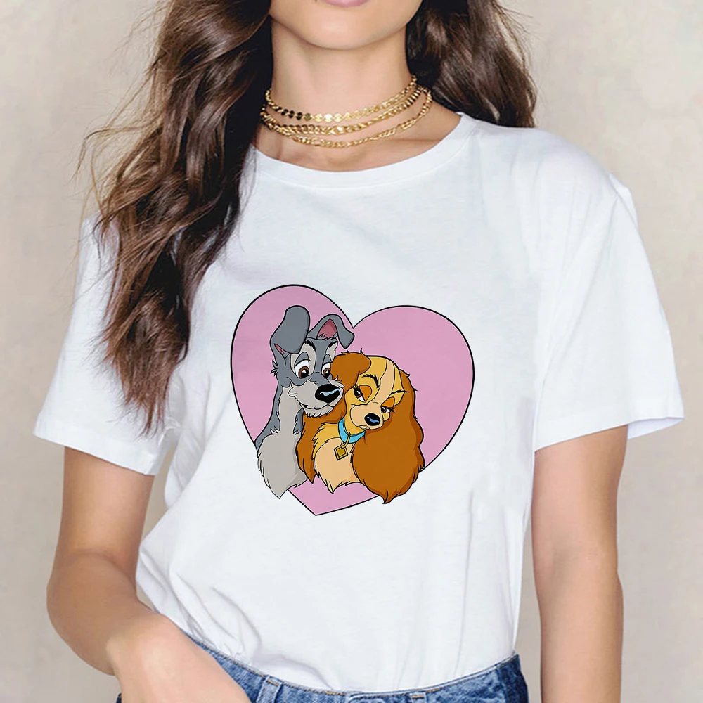 Кавайная футболка в стиле Харадзюку с героями диснеевских анимационных фильмов, женская футболка с героями мультфильмов, забавная футболка, милый топ для влюбленных, футболка с собакой