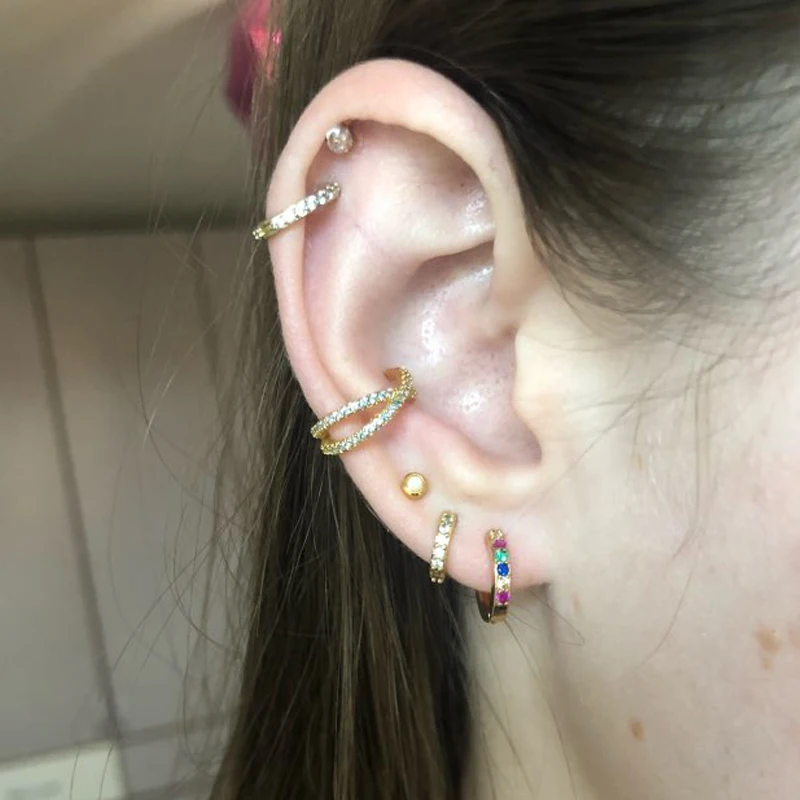4 шт.компл. 8 мм радужные кристаллы циркония серьги-гвоздики для женщин мужчин спиральный для хряща пирсинга крошечные серьги Huggie серьги круглые серьги