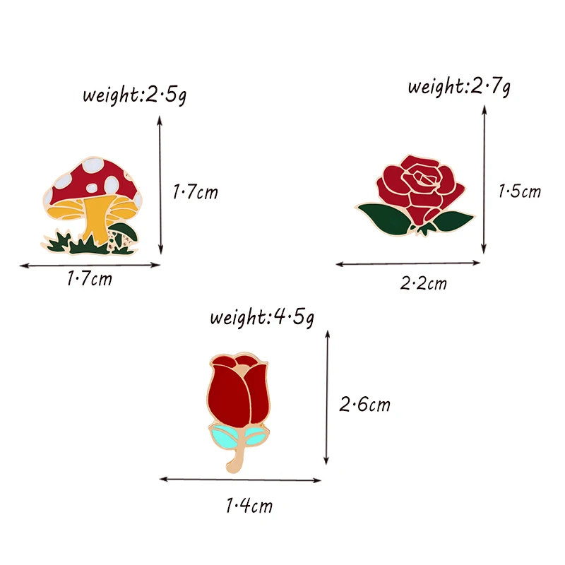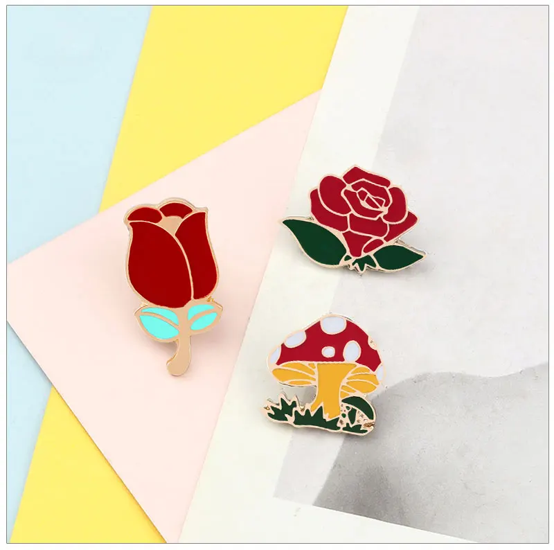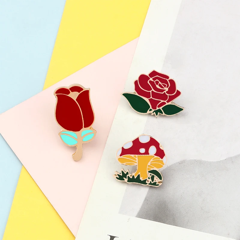 Брошь с растительным цветком Роза гриб красный цветок значок эмаль шпильки джинсы рубашка сумка отворот булавка для женщин мультфильм ювелирные изделия девушка подарки
