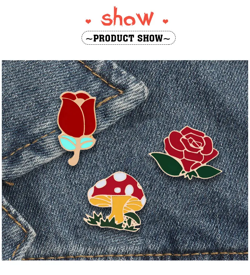 Брошь в виде цветка, розы, гриба, красного цвета, эмалированный значок, булавка для джинсов, рубашек, сумок, Нагрудный значок, женское мультяшное ювелирное изделие, подарки для девочек