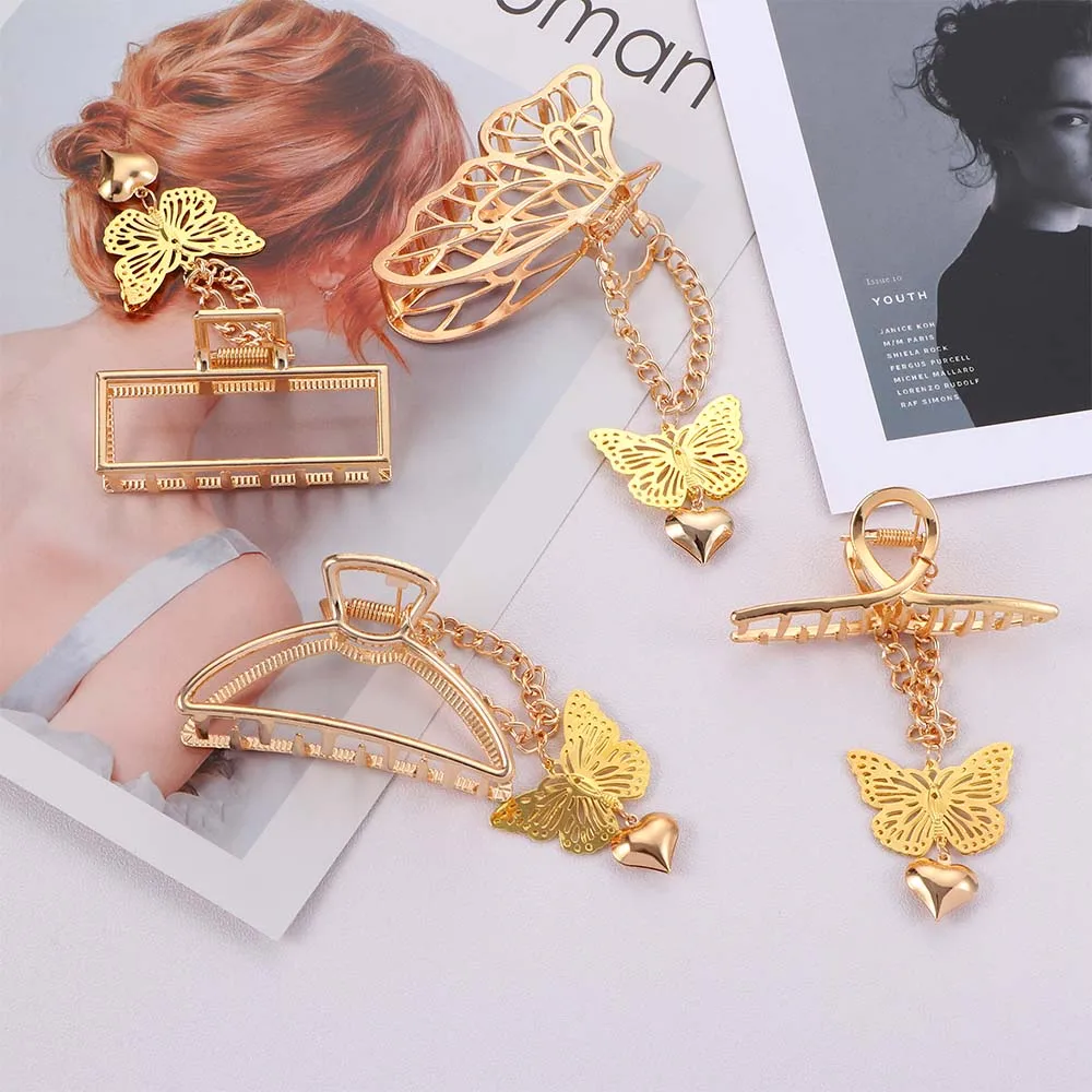 Винтажные женские заколки-крабы для волос в Корейском стиле, золотистые и серебристые металлические заколки-бабочки с длинной кисточкой, аксессуары вечерние, ювелирные изделия