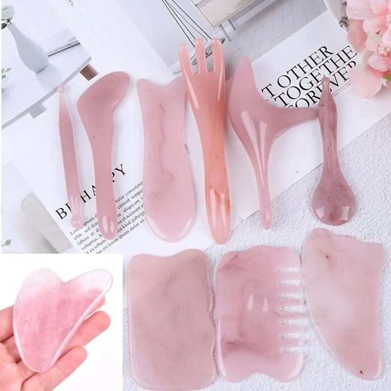 Массажер из розового кварца и нефрита, скребок из натурального камня для шеи, спины и тела, Массажная терапия, 1 шт.