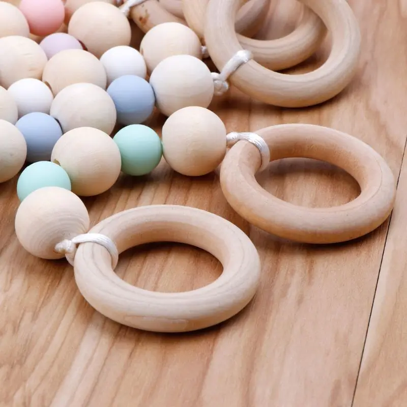 Детские игрушки Монтессори, буковое деревянное кольцо, силиконовые бусины, деревянная погремушка WXTD