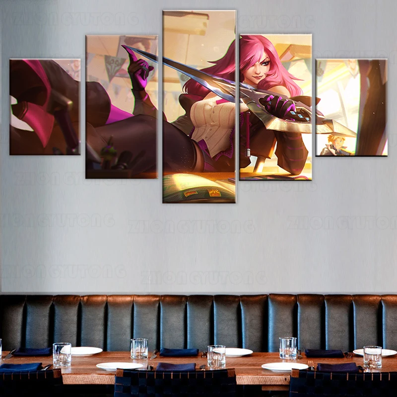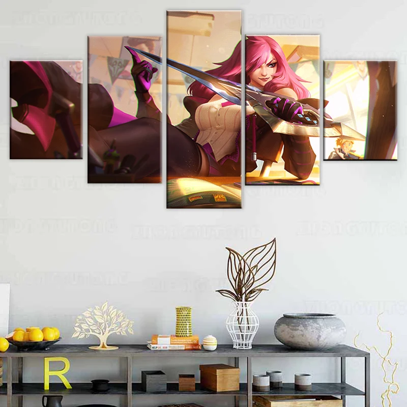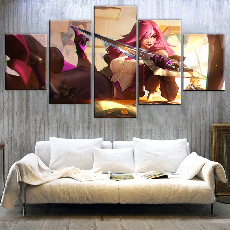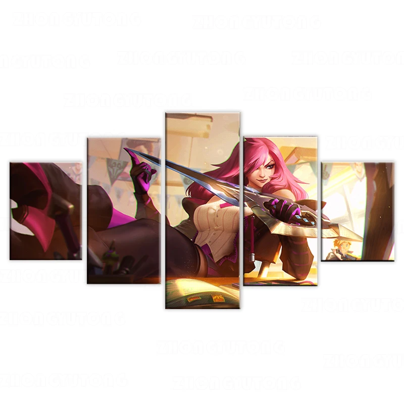 Домашний декор, плакаты, картины, печать на холсте, 5 шт., Модульная картина LOL League of Legends, Катарина, игра HD, для гостиной, декоративная картина