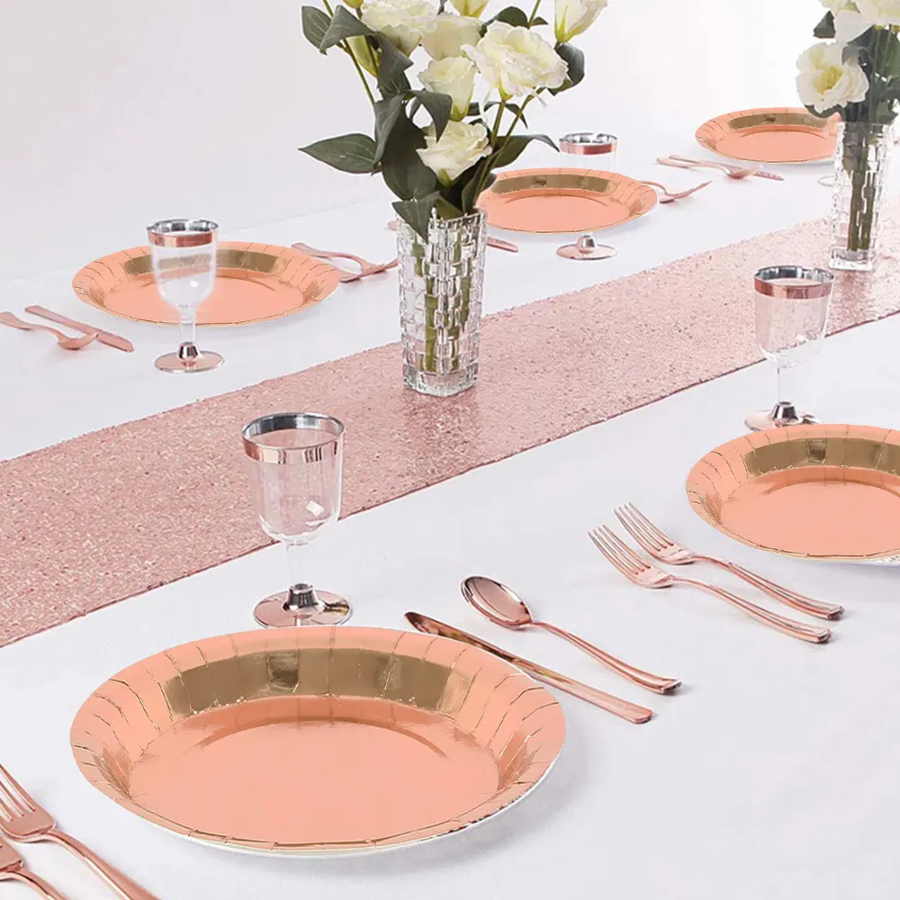 Набор одноразовой посуды из 146 предметов, розовое золото, тарелки, чашки, соломинки, праздничное украшение для ресторана, товары для свадьбы, дня рождения