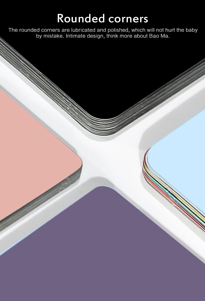 Двухсторонние и большие карты изготовлены из плотного картона и представляют контрастные иллюстрации, основанные на видении ребенка.