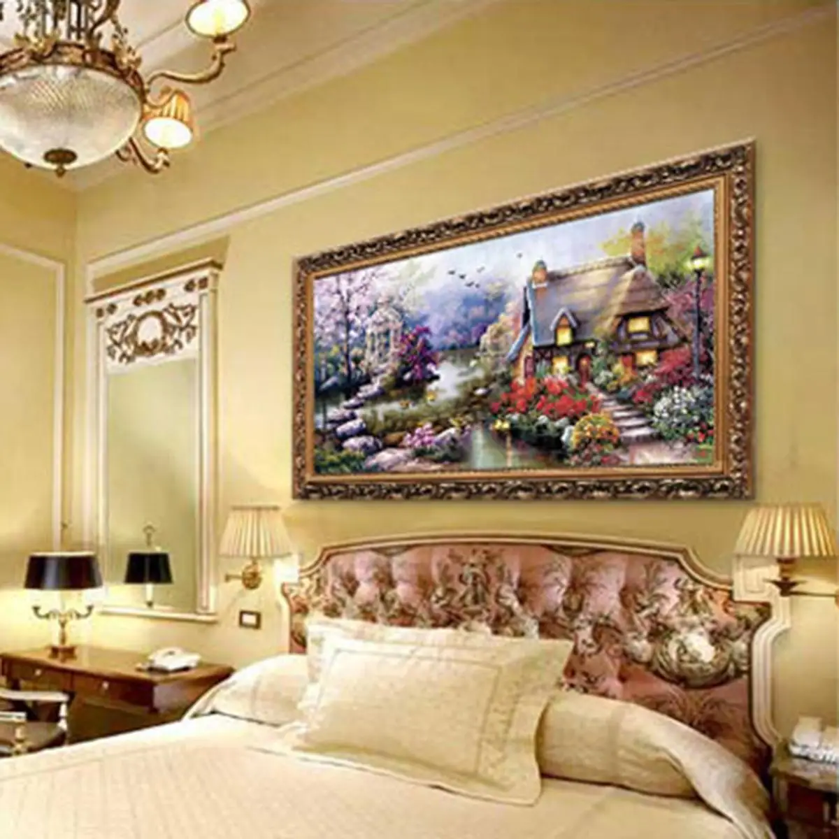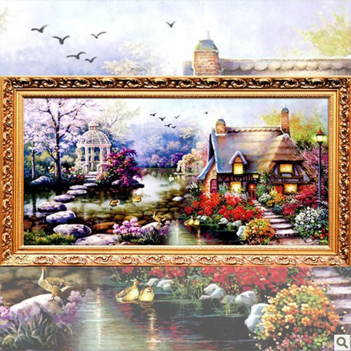 Набор для вышивки крестиком 14CT, вышивка крестиком в саду, коттедже, 68x38 см, хлопковая набор ниток, украшение для дома, настенное искусство
