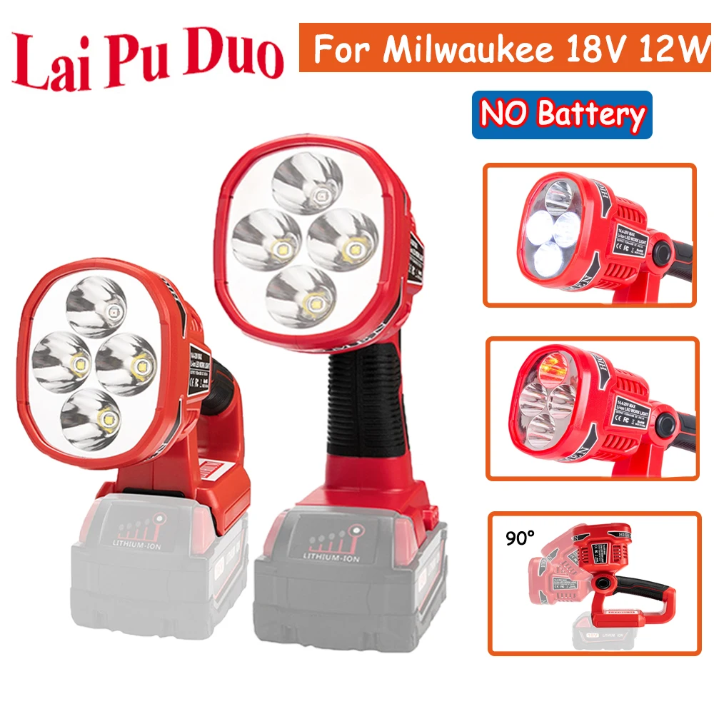 Светодиодная лампа рабочего освещения 12 Вт 18 в для Milwaukee M18 (без аккумулятора, без зарядного устройства), литий-ионный аккумулятор, USB, внешние инструменты, фонасветильник