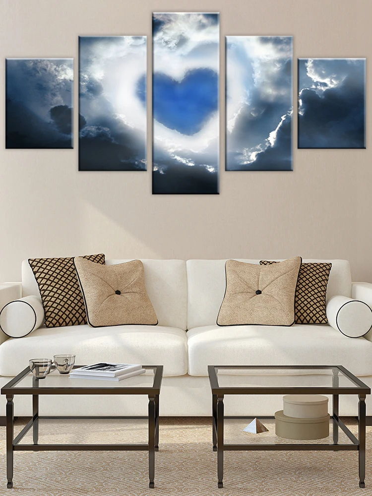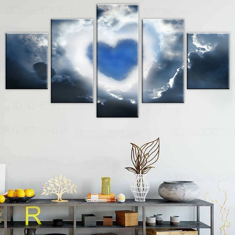 Модульные настенные картины на холсте, HD печать, постер, 5 панелей, любовь, сердце, небо, пейзаж, для гостиной, домашний декор