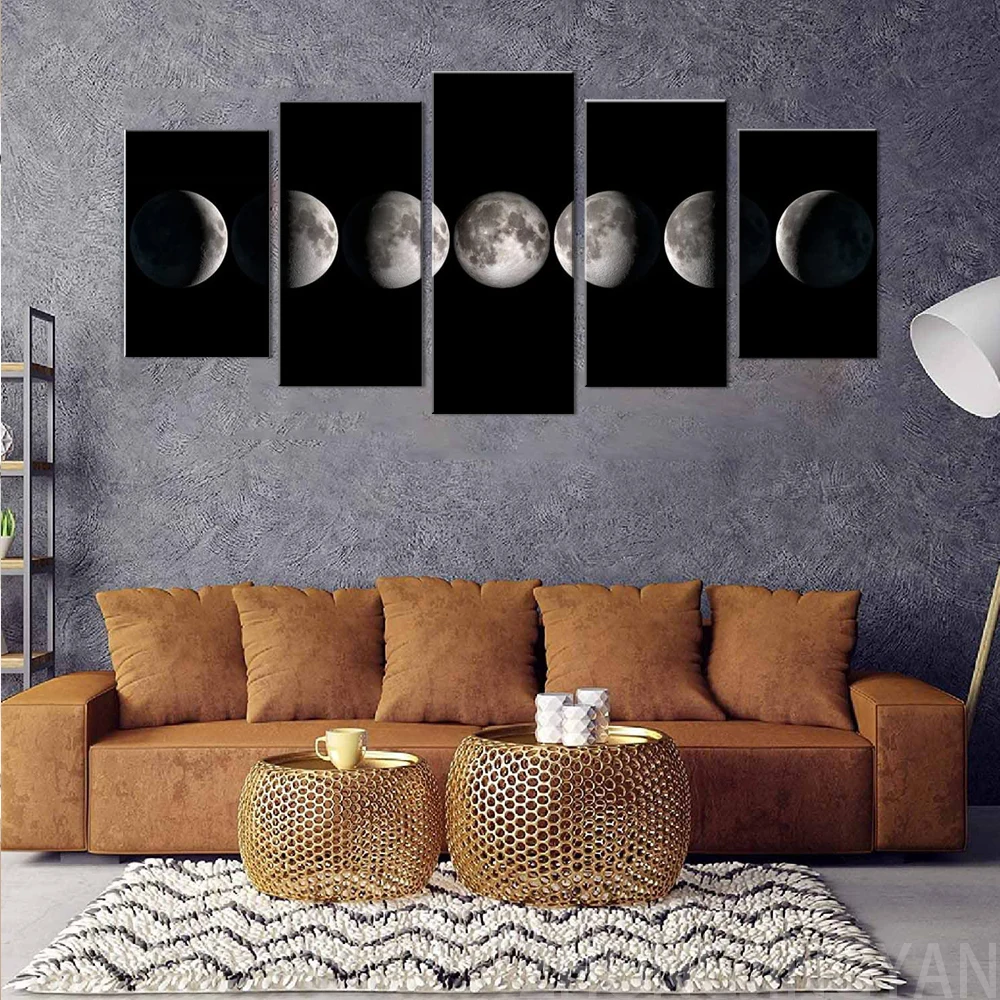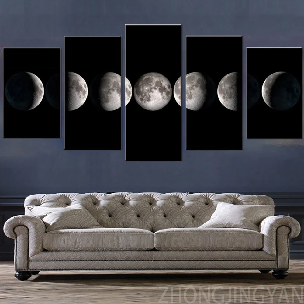 Модульная картина принты; Фазы Луны являются элементами картинки фото Картины на картины на холсте для Украшения дома и офиса 5 штук растягивается A