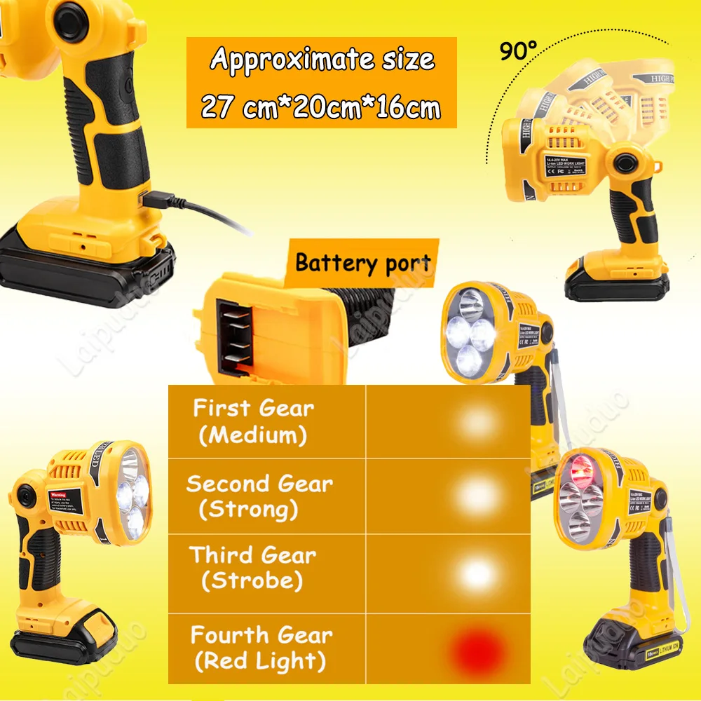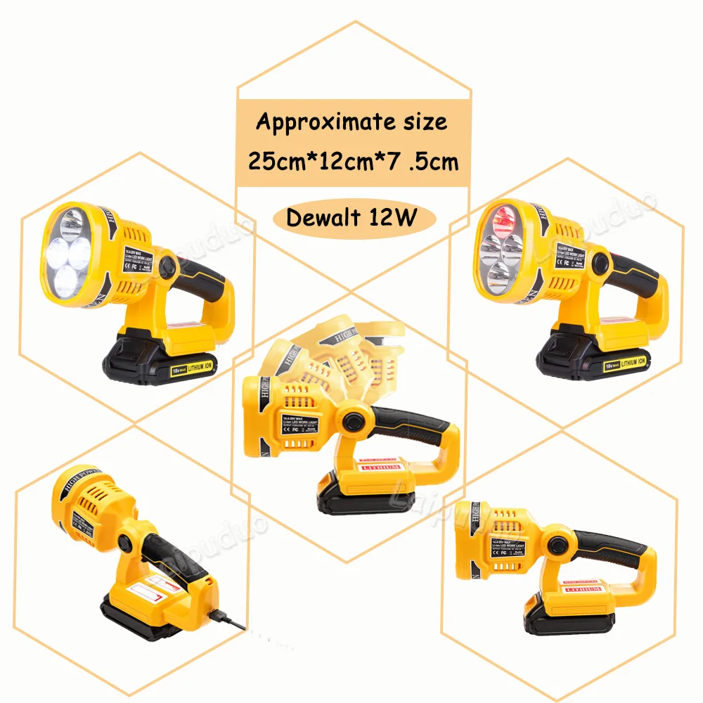 Светодиодная лампа 12 Вт, фонасветильник для Dewalt 18 в, DCB140, DCB200 (без аккумулятора, без зарядного устройства), литиевая батарея, USB, наружные инструменты, светильник