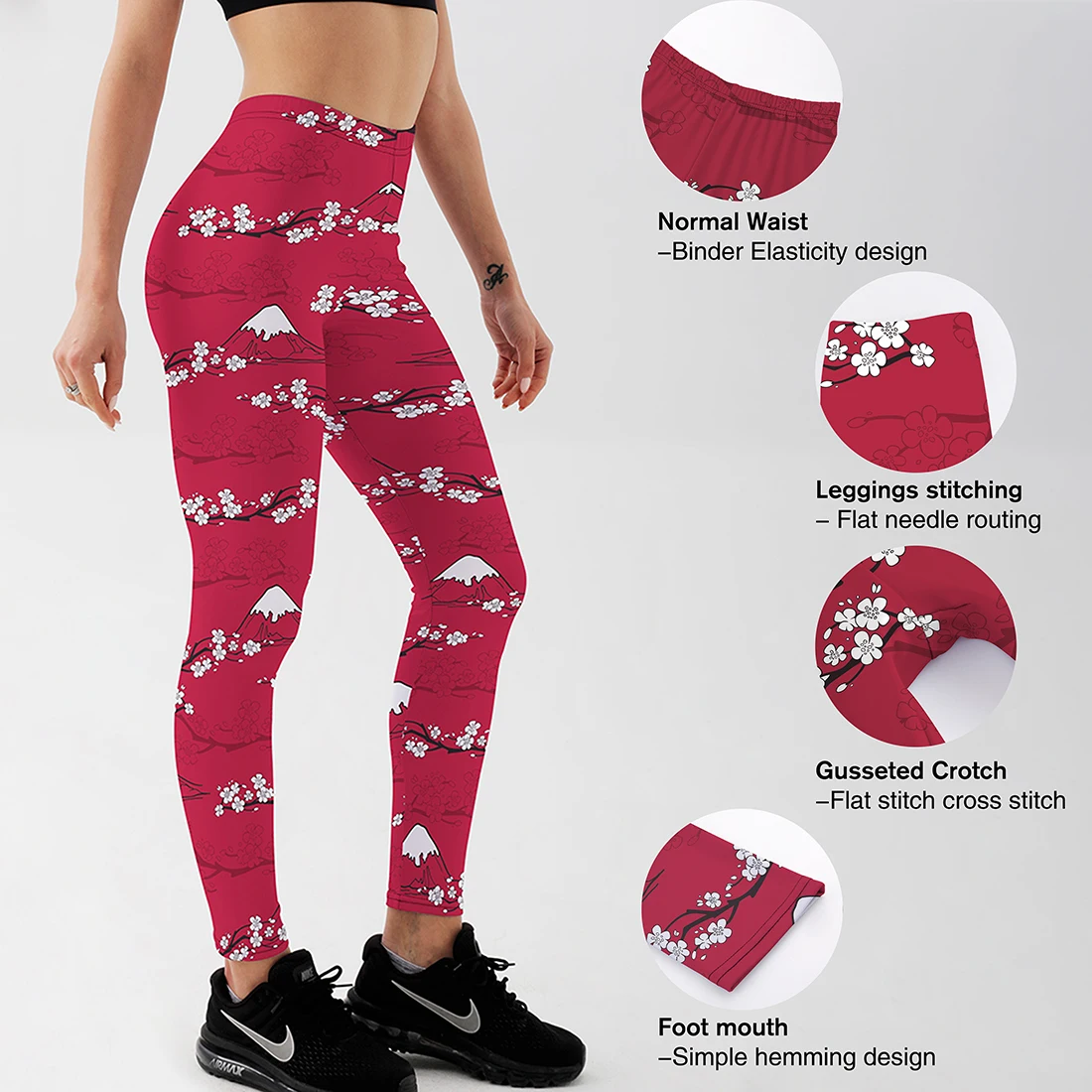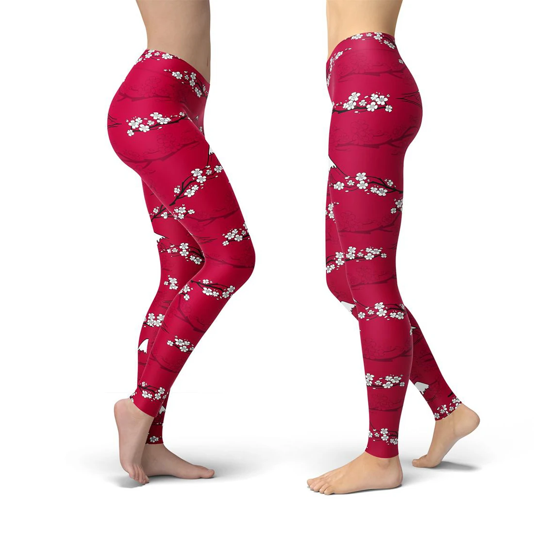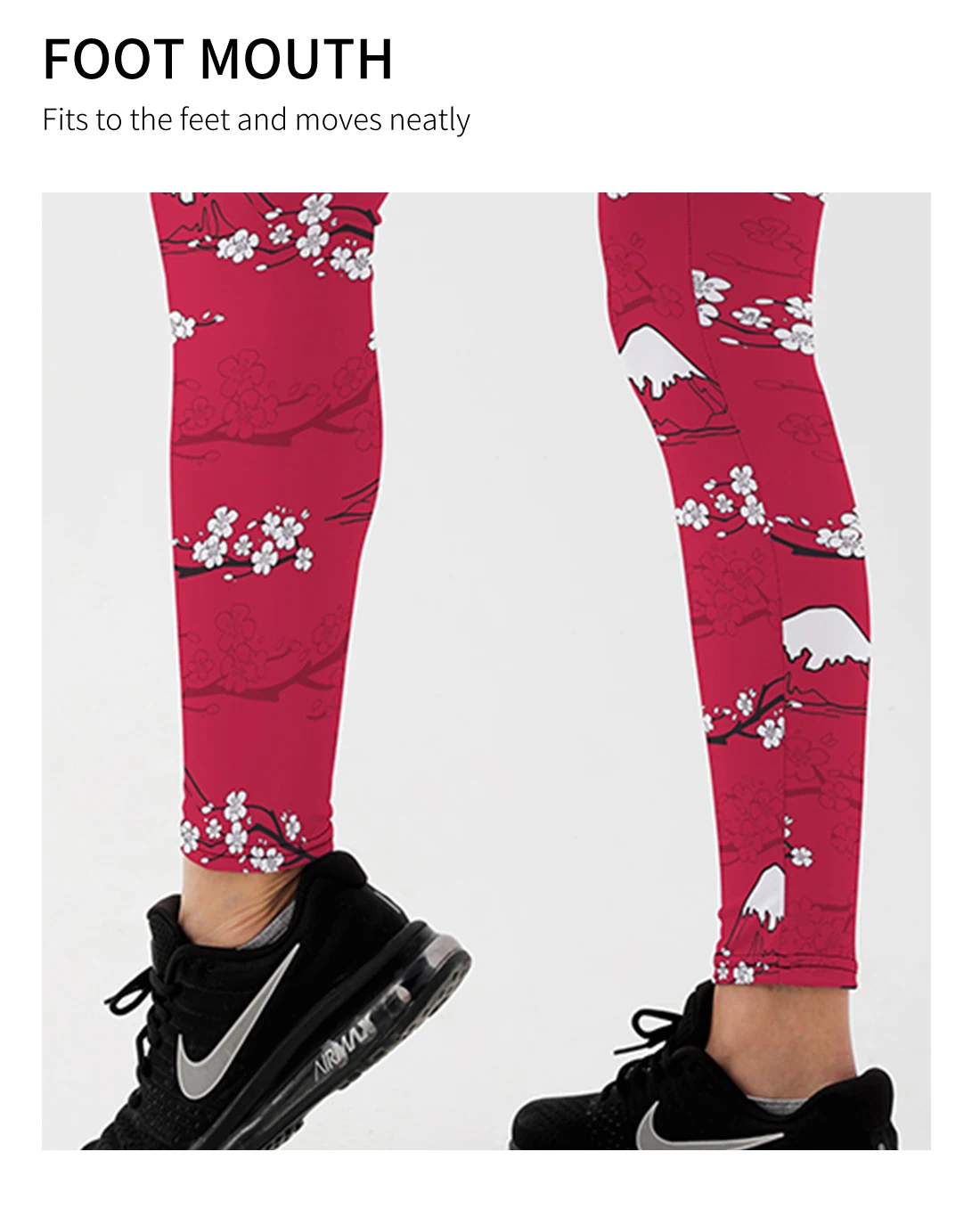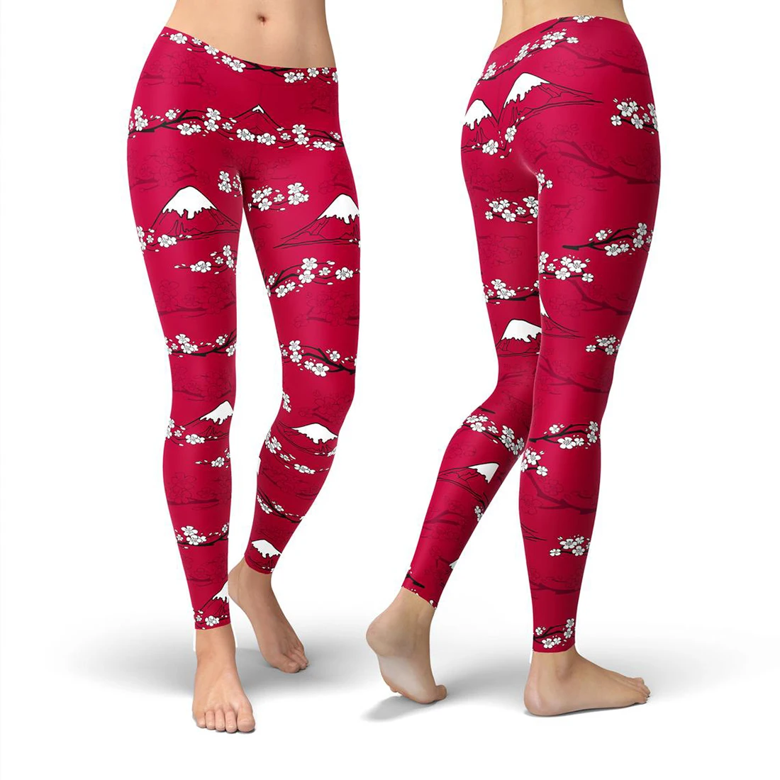 Женские красные штаны для тренировок с принтом снега и сливы, модные спортивные Леггинсы для фитнеса и бега, женские стили размера плюс