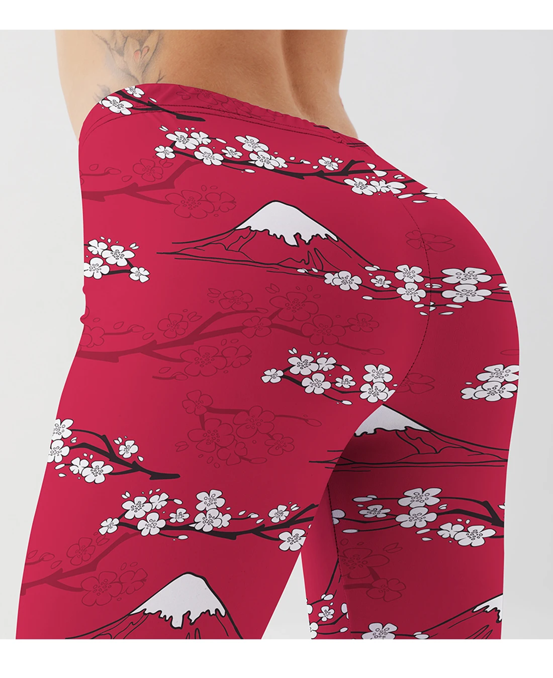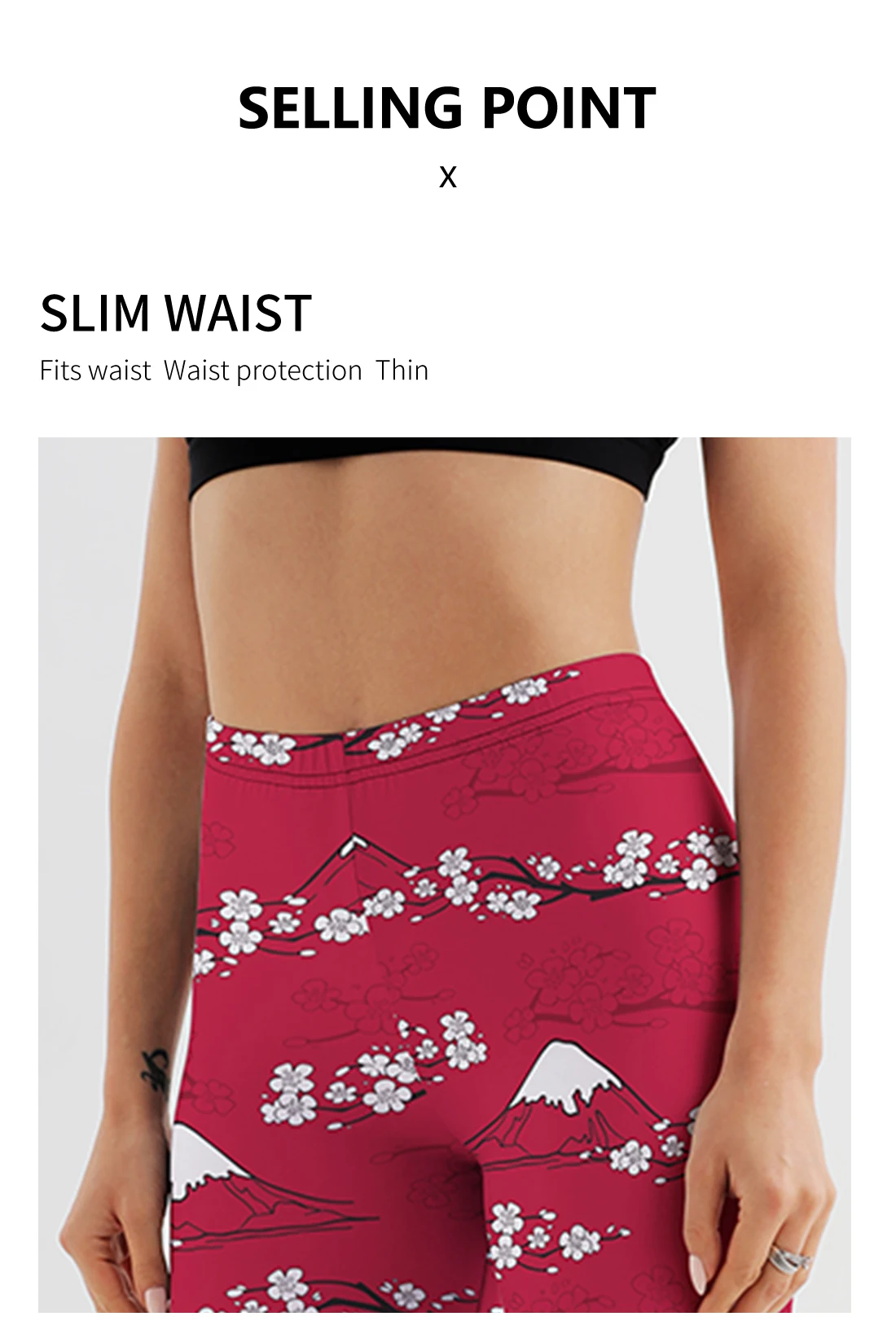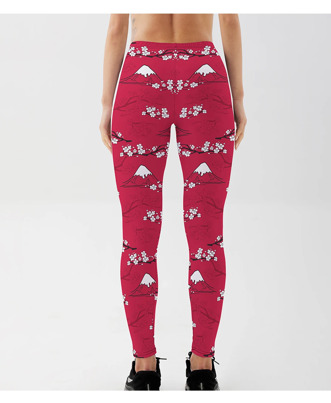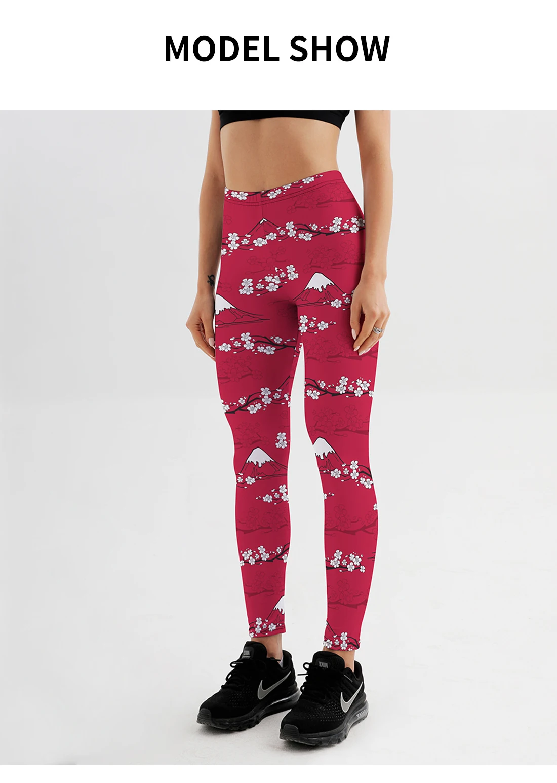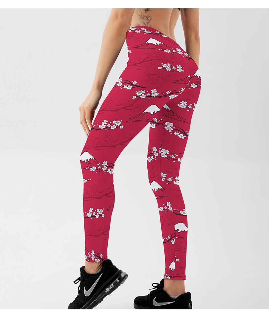 Женские красные штаны для тренировок с принтом снега и сливы, модные спортивные Леггинсы для фитнеса и бега, женские стили размера плюс