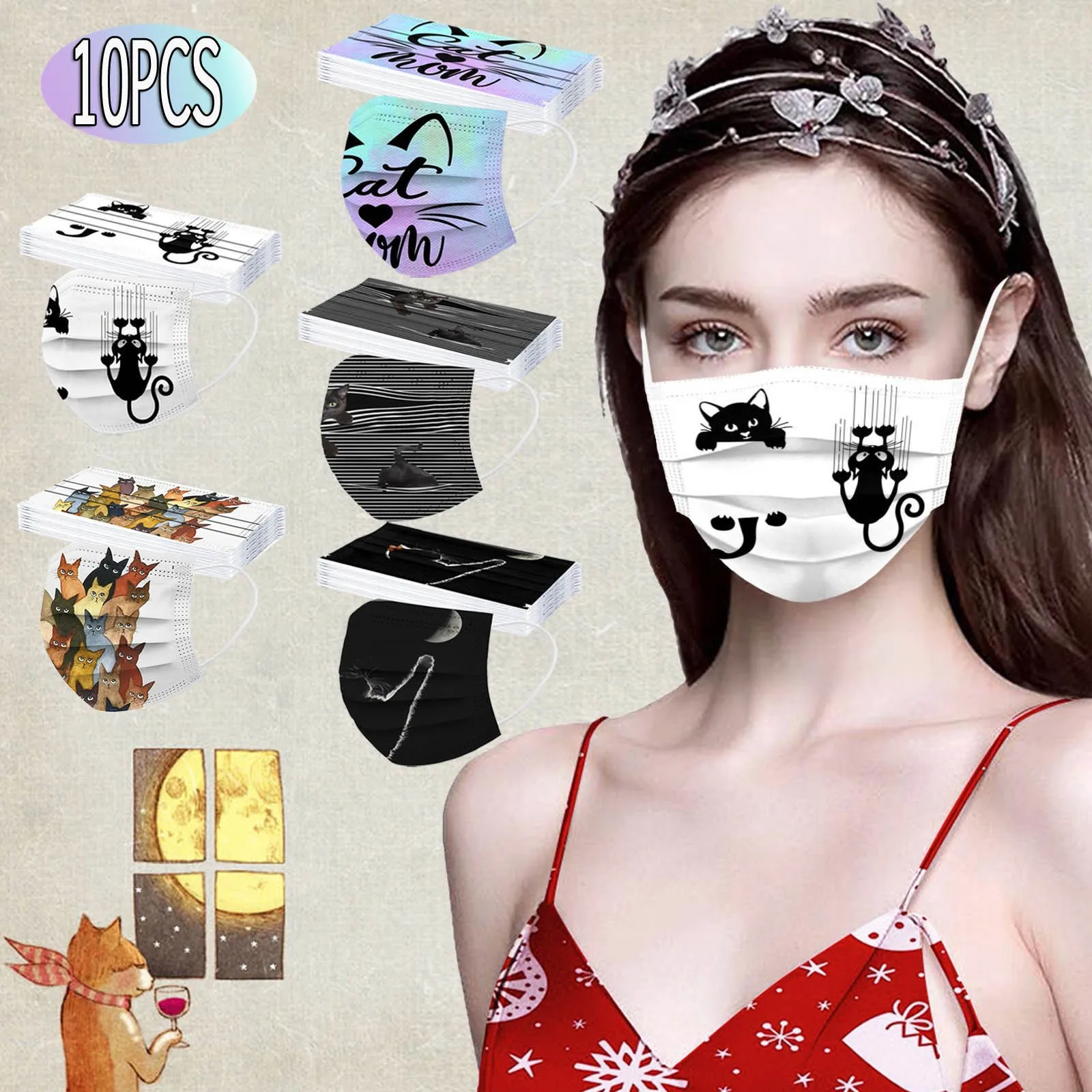 10 шт. взрослых и принтами кошек мультфильмов дышащий одноразовая маска для лица 3Ply петли уха Anti-PM2.5 маска Mascarillas маска