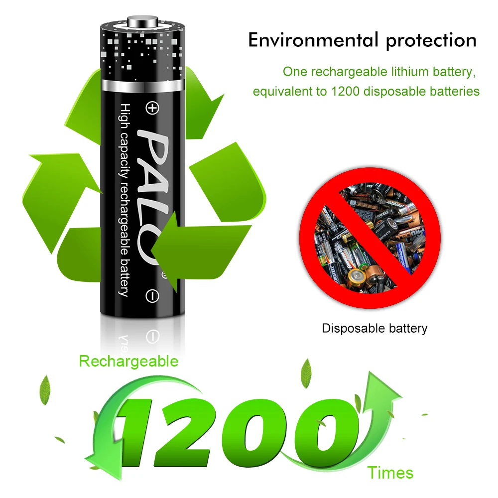 Аккумуляторные батарейки PALO, литий-ионные батарейки 1,5 в AA + ли...