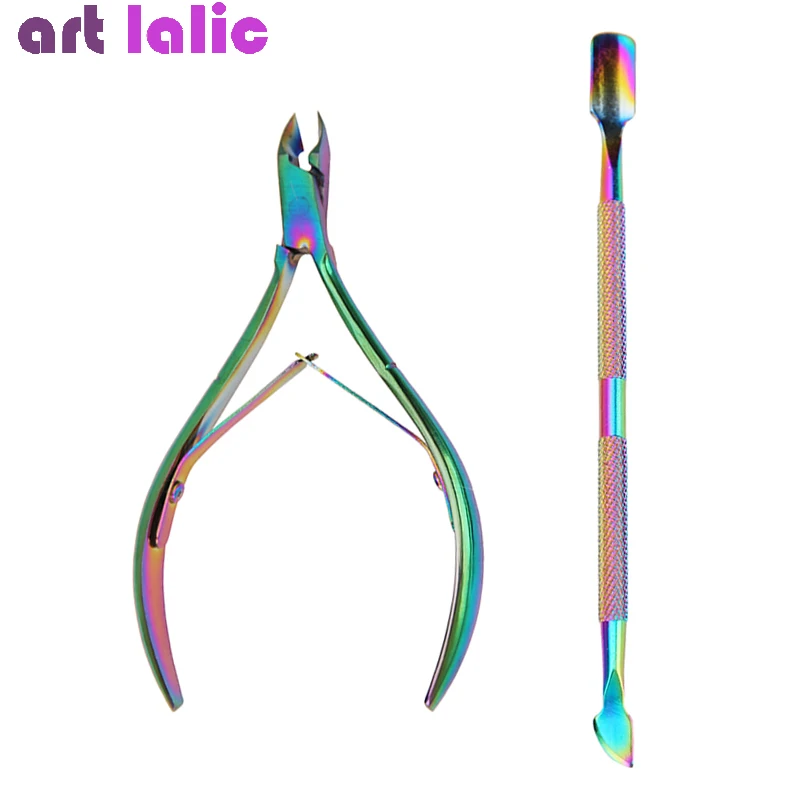 Набор из 2 инструментов для маникюра и педикюра, нержавеющая сталь, для кутикулы кусачки Ножничные + пилки для удаления омертвевшей кожи, титановый цвет
