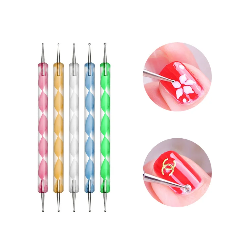 5 шт.компл. УФ-гель для рисования ногтей точечная ручка акриловая ручка Стразы Кристалл 2 направления кисть салонное украшение набор инструментов для маникюра