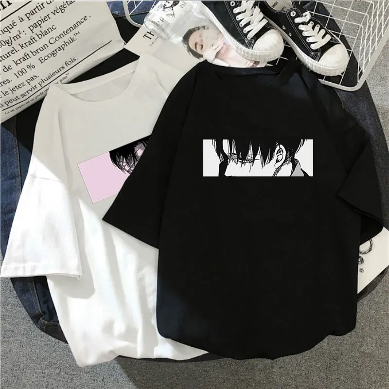 Аниме футболка атака на Титанов футболка Levi Ackerman глаз принт ...