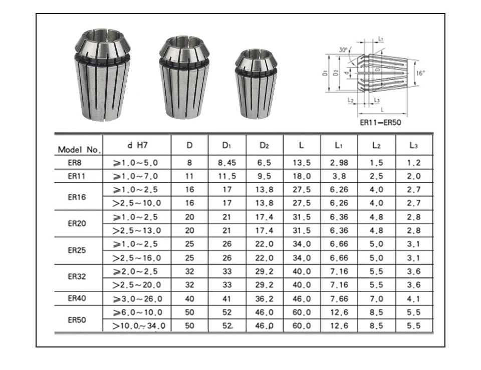 ER11, ER16, ER20, ER25, пружинная Цанга из стали ER, ER11-1, ER16-9, ER25-16, для фрезерного станка с ЧПУ, держатель двигатель шпинделя гравировального станка