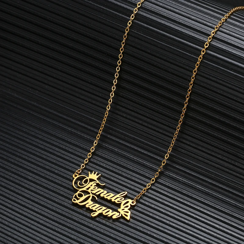 Индивидуальное Двухслойное ожерелье с именем и бабочкой, короной, искусственными буквами, цепочка-чокер для пары, ювелирные изделия, подарок