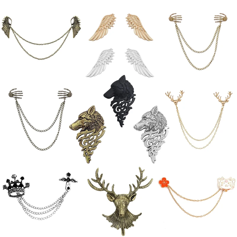 Модные Винтажные мужские Броши Крылья ангела олень волк кот животное брошь на булавке для мужчин и женщин брошь череп брошь на воротник