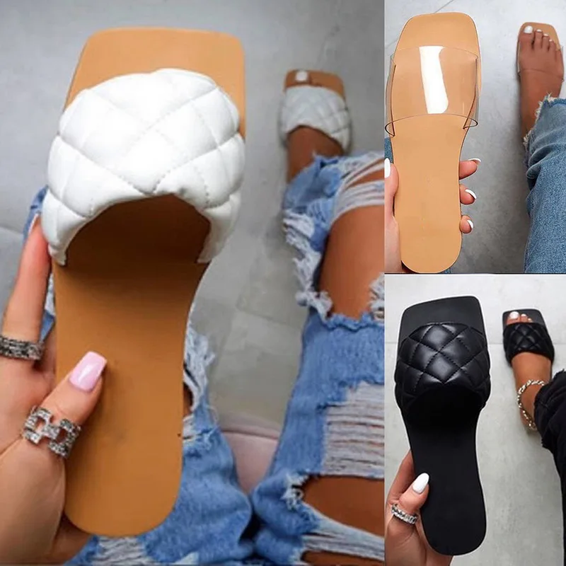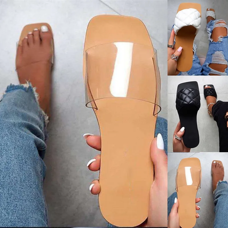 Сандалии женские резиновые, Стильная летняя обувь на плоской подошве, 2020 кожаные шлепанцы, размера плюс, Soulier Femme