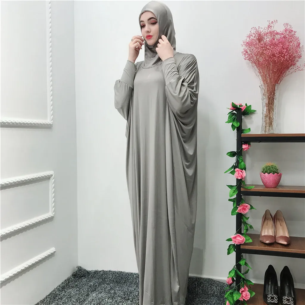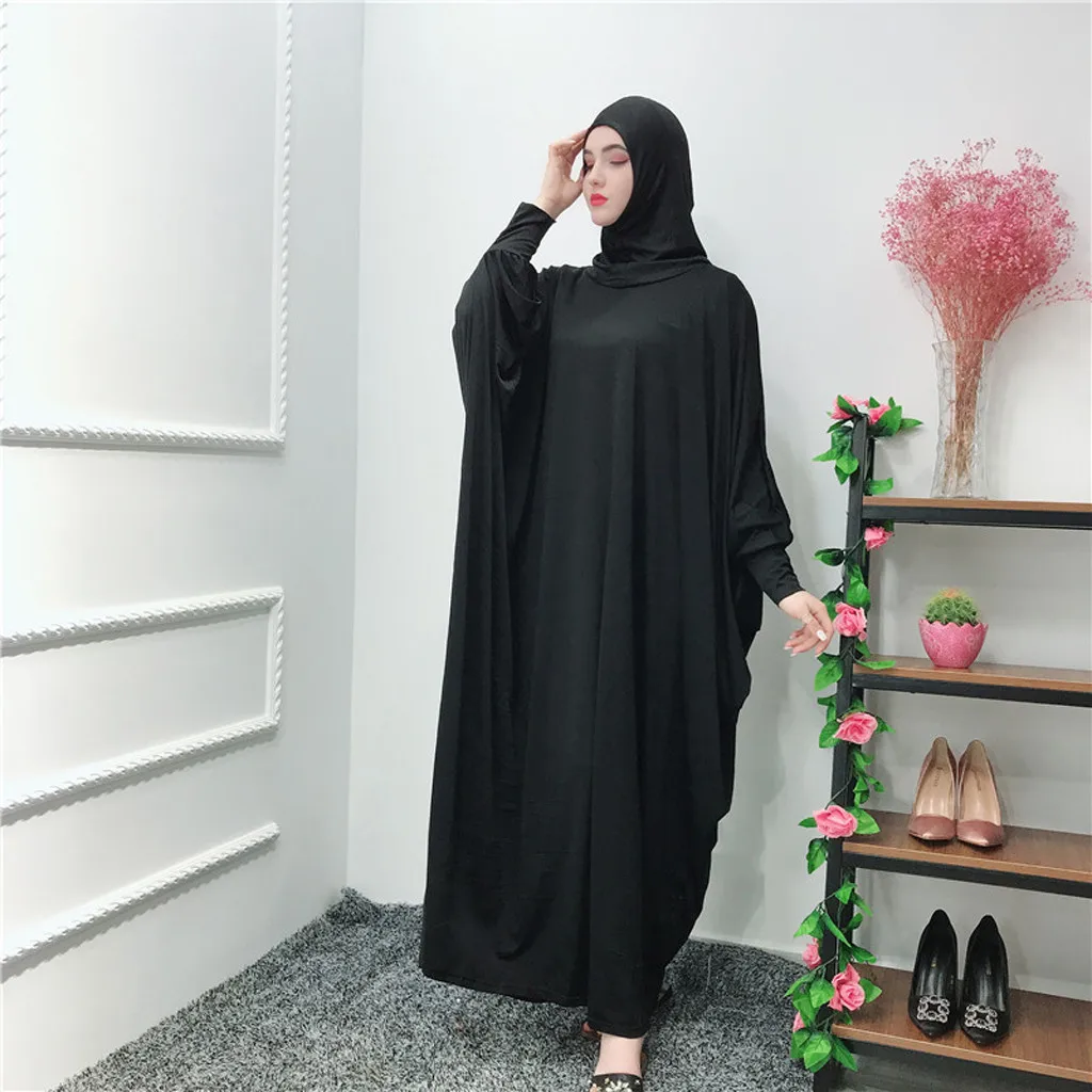 Мусульманские Женские однотонные головные уборы с рукавами «летучая мышь», халаты, кардиган, платье для Рамадана