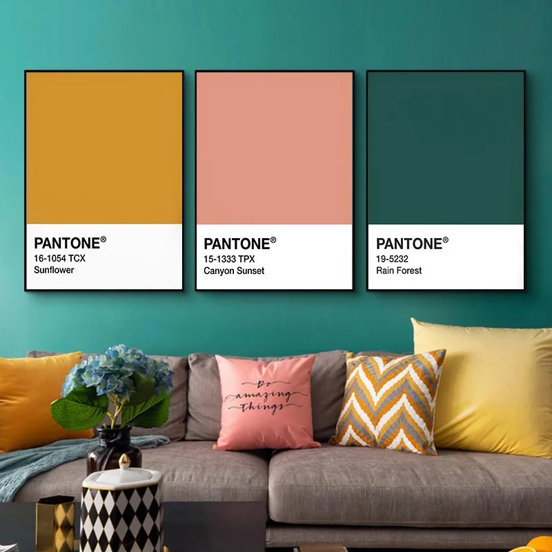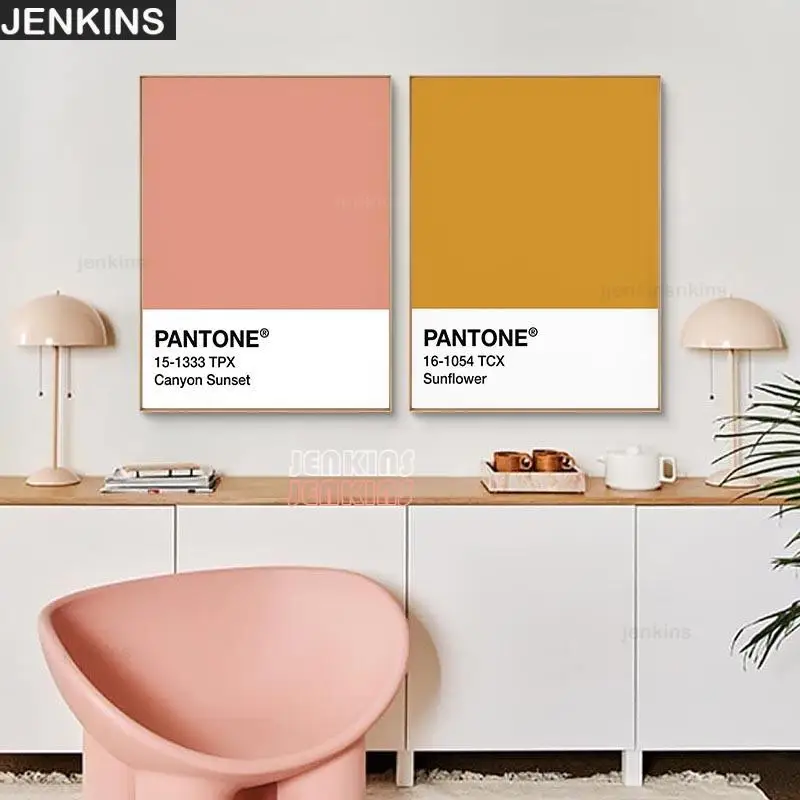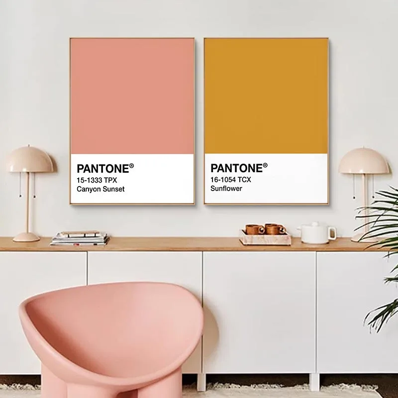 Цветовые узоры с буквами Pantone, настенный плакат для домашнего декора, розово-желтый, зеленый, Современная Картина на холсте для украшения гостиной