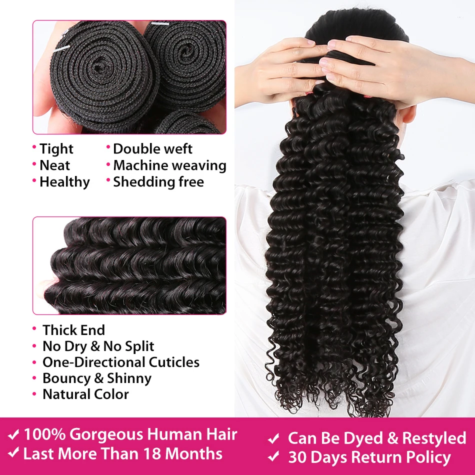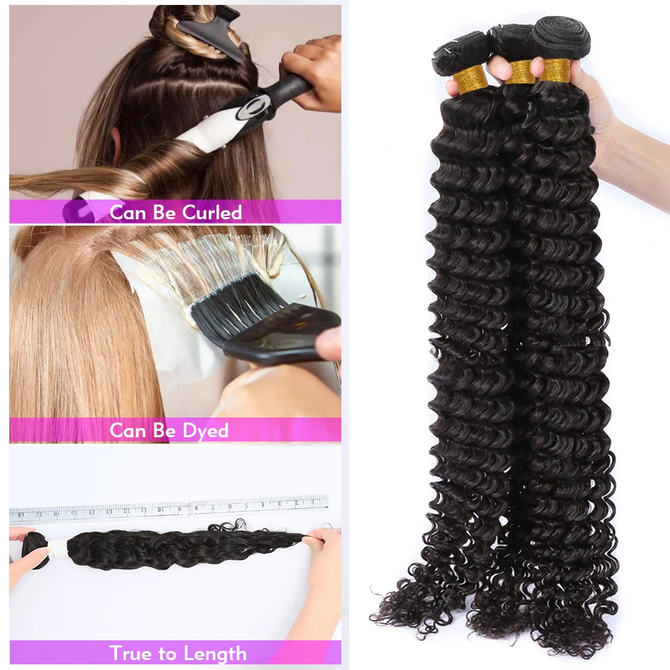 Глубокая волна 28 30 32 40 дюймов, Remy (Реми бразильские волосы категории virgin человеческие волосы пряди натуральных Цвет воды вьющиеся 100% пряди человеческих волос для наращивания волос