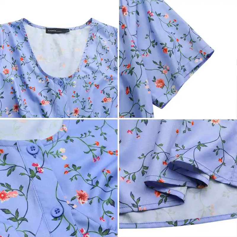 Платье Celmia женское средней длины с коротким рукавом, Элегантный французский сарафан с цветочным принтом, повседневная одежда с круглым вырезом, лето 2021