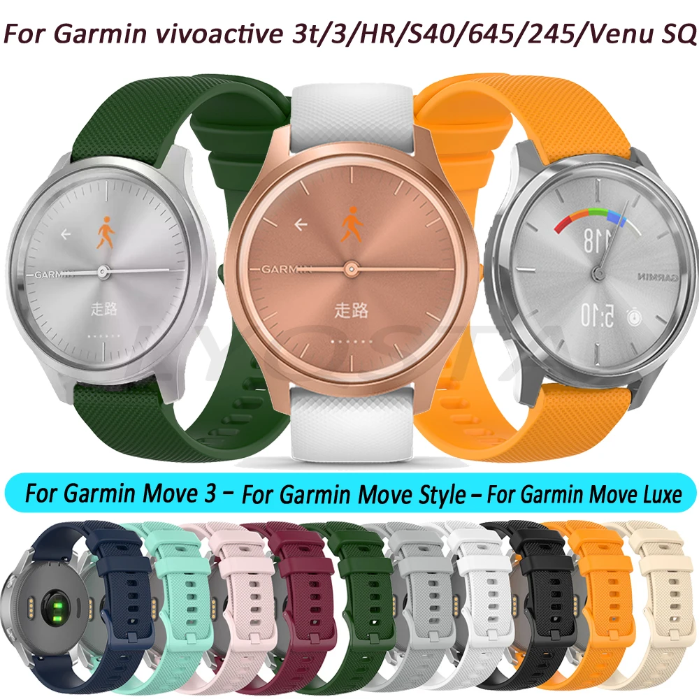 Ремешок для часов 20 мм для Garmin Vivoactive 3/HR/S40/Forerunner 645 245, силиконовый ремешок для часов Garmin vivant SQ/Move 3/Luxe/Style