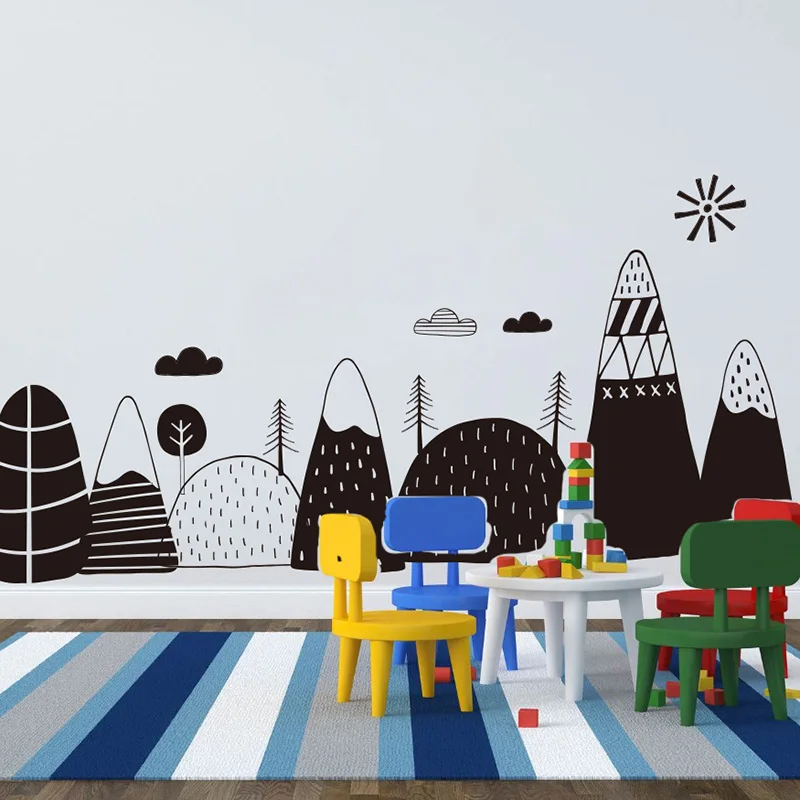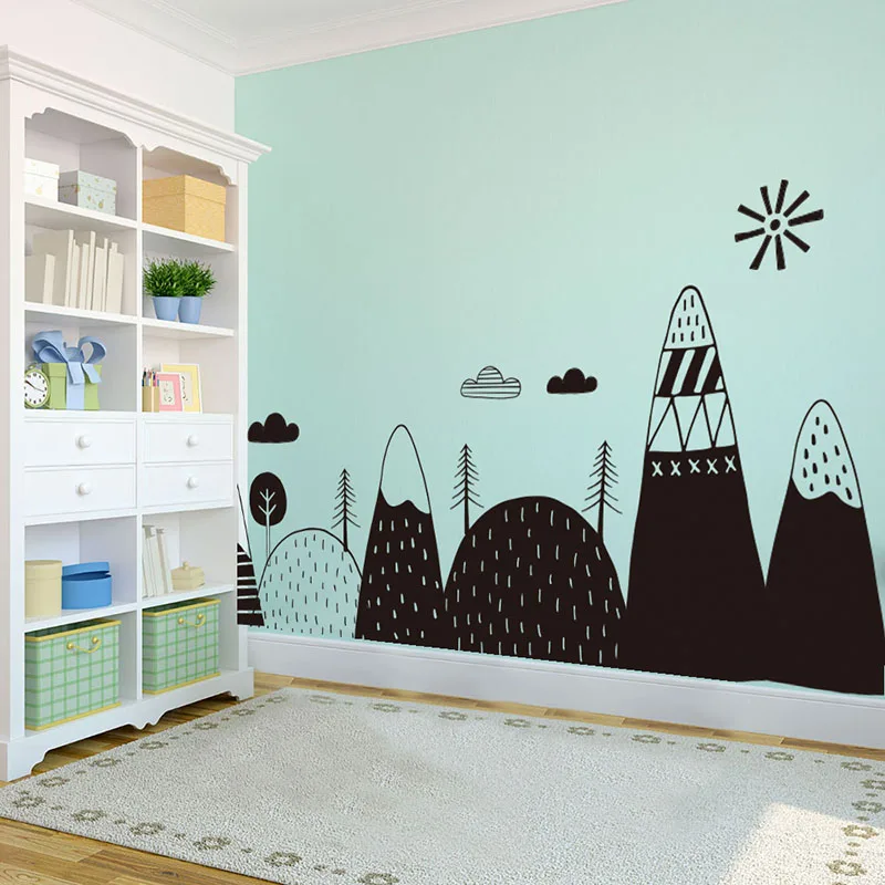 Скандинавская Этническая Гора солнце дерево животное Наклейка на стену скандинавские Джунгли Лес Гора природа Наклейка на стену для детской комнаты спальни