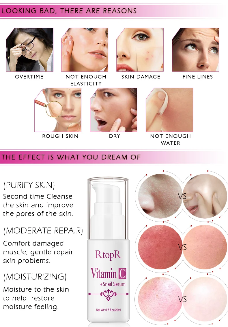 Витамин C Отбеливание лица Сыворотки улитки антивозрастной укрепляю...