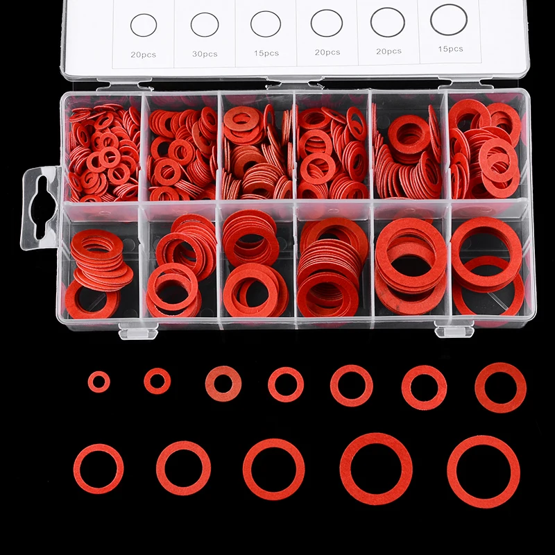 Набор для шайбы из красного стального волокна, 600 шт., набор для шайбы из плоского кольца, ассортимент уплотнений, набор изоляционных шайб, уплотнительных гаек и болтов