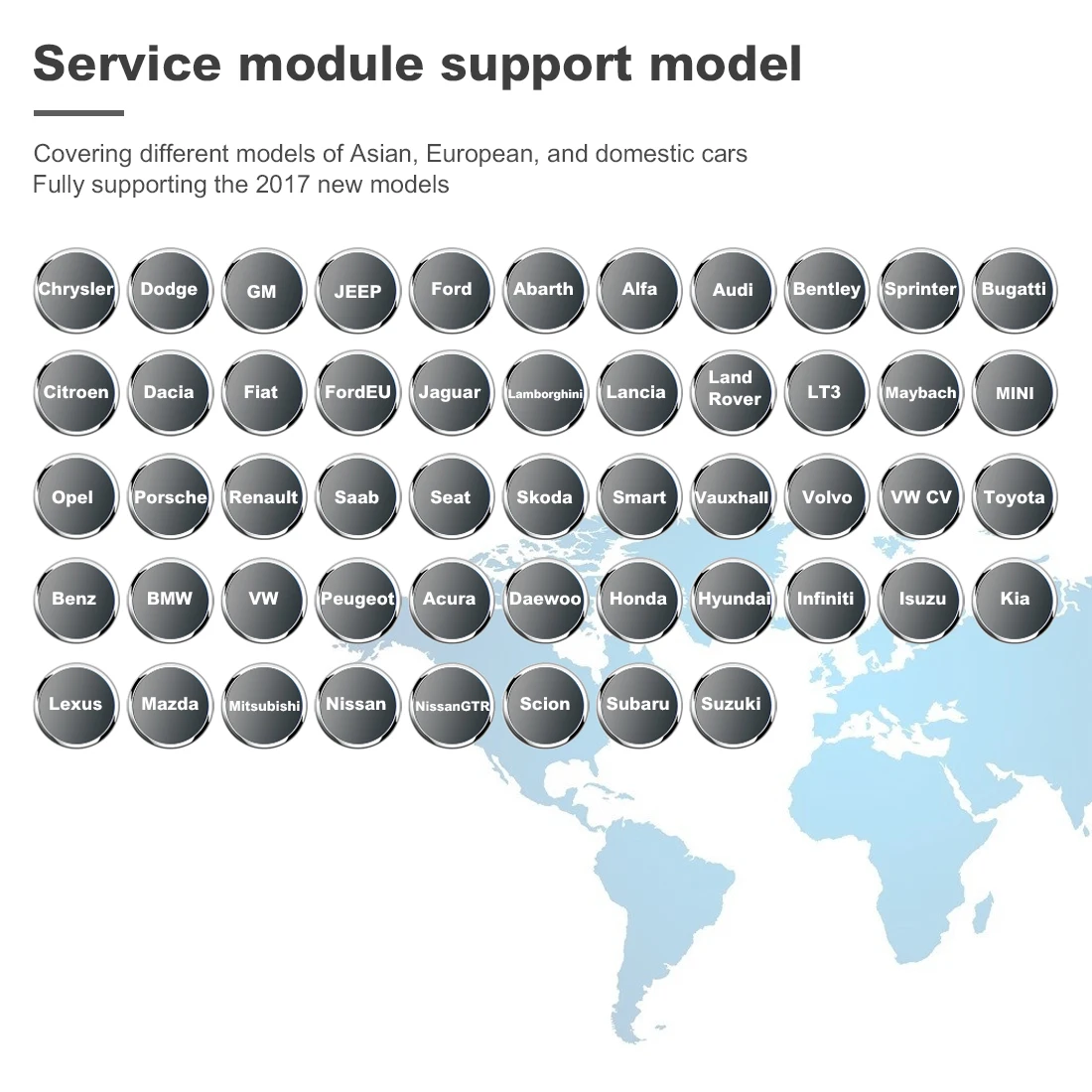 Широкое покрытие транспортного средства для более чем 80 американских, азиатских и европейских автомобилей.