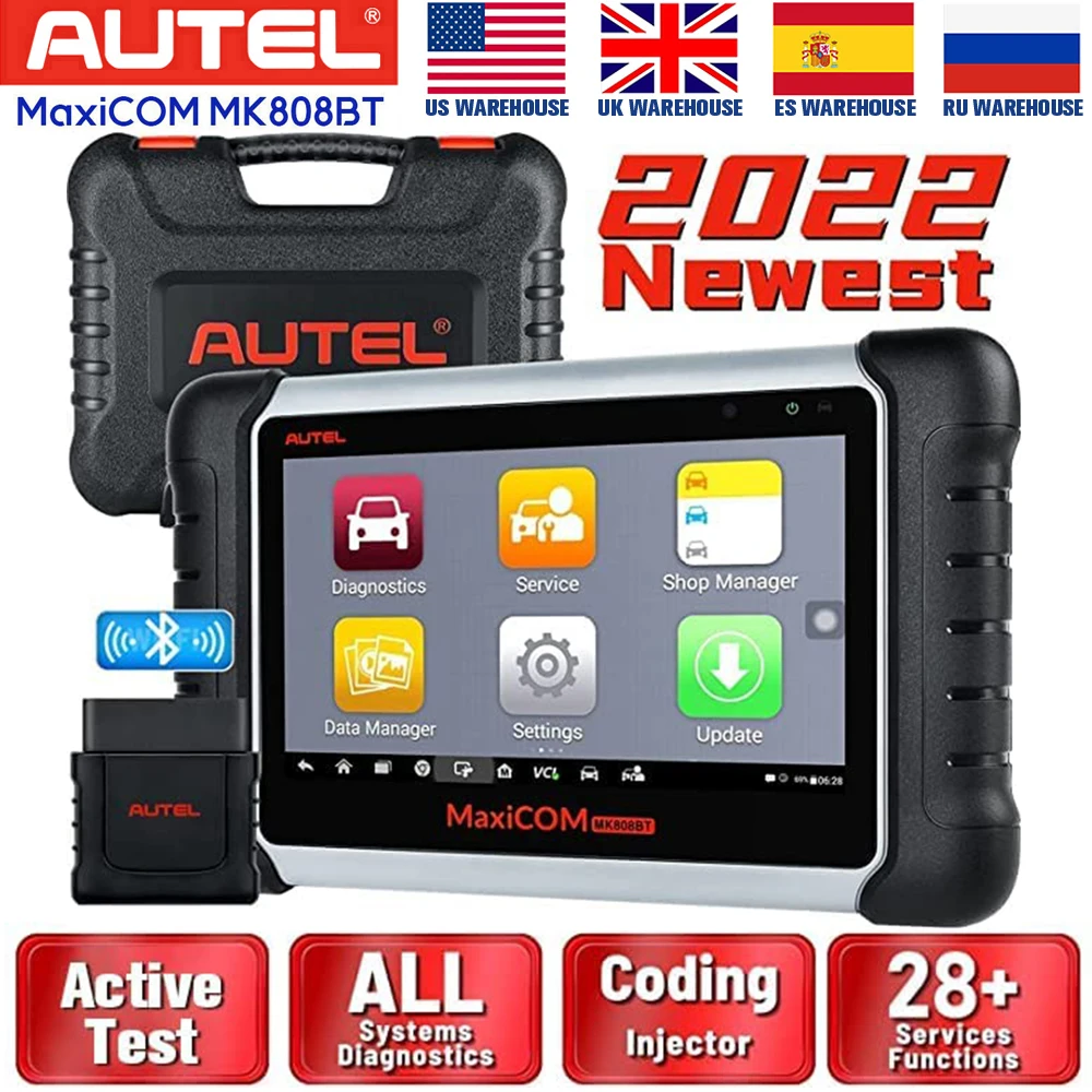 Диагностический сканер Autel MaxiCOM MK808BT, диагностический инструмент с активным тестом, диагностика всех систем, диагностика 28 + услуг, OBD2 сканер PK MK808, новинка 2022