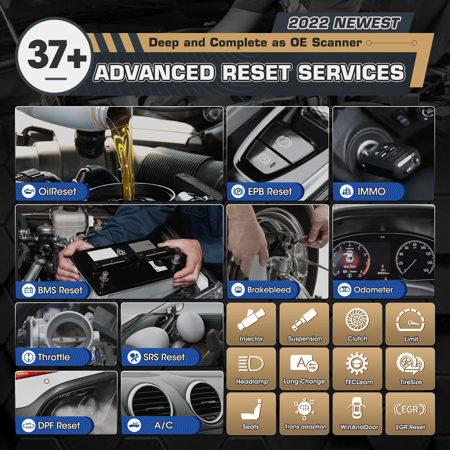 Function 2ABS, DPF, EPB, SAS, SRS, TPMS, BMS, Oil Service Reset, Engine