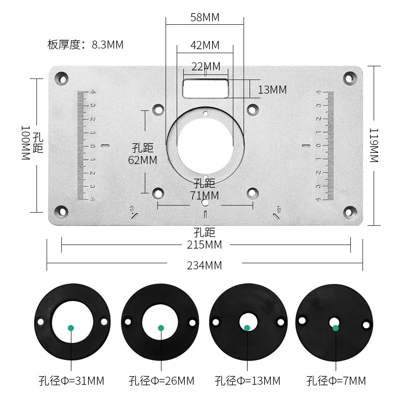 Особенности:Состояние на 100% абсолютно новый и высокое качествоНабор инструментов для деревообработки включает в себя 1 пластину для вставки стола маршрутизатора, 4 кольца со вставками маршрутизатора и несколько крепежных винтов.Изготовлен из алюминиевого сплава, он прочный в использовании и не легко ржавеет.Удобная Втулка с центральным отверстием, используемая для выравнивания маршрутизатора, поэтому она центрируется в отверстии для бит.Точно сверлить и устанавливать любой маршрутизатор легко.Он прост в использовании и делает работу хорошо выполненной.Характеристики:Материал: пластина из алюминиевого сплава + пластиковые кольцаЦвет: серебристыйРазмер: прибл. 235x119x 8 мм/9.25x4.72x0.31''Количество: 1 комплектПримечание:Допускается ошибка в 1–3 мм из-за измерений вручную Пожалуйста, убедитесь, что вы не возражаете, прежде чем сделать ставку.Из-за разницы между различными мониторами изображение может не отражать фактический цвет изделия. Спасибо!Посылка включает в себя:1 x пластина для вставки стола маршрутизатора4 кольца со вставками для маршрутизатора1 x набор крепежных винтов