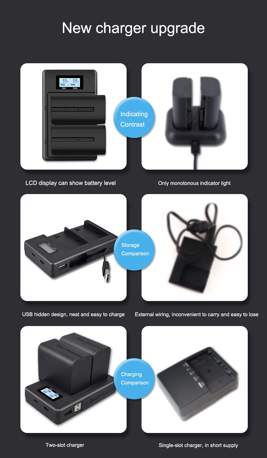 1. Литий-ионные аккумуляторы премиум класса2. Высокая плотность энергии, долгий срок службы, без памяти3. Дополнительная мощность, больше снимков для ваших камер
