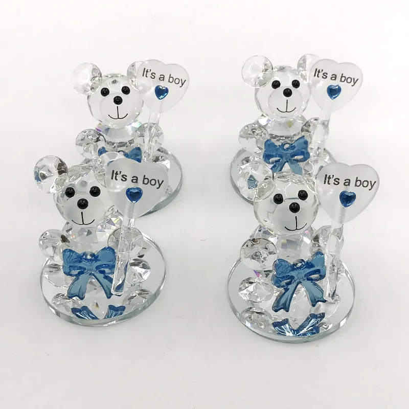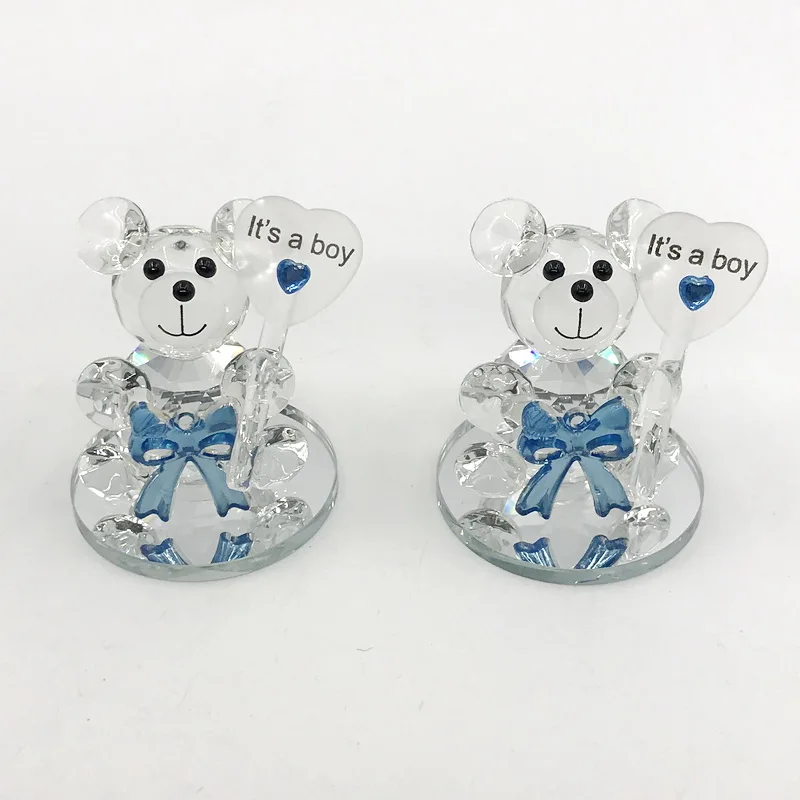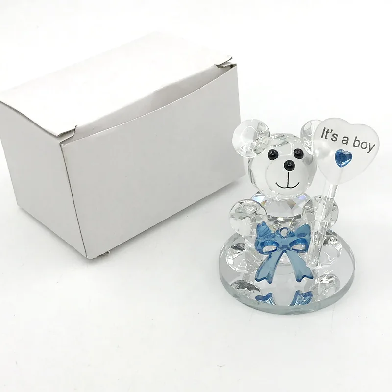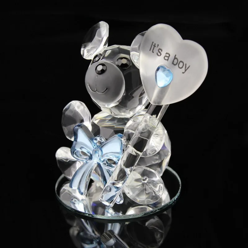 1 шт., синий бант, Кристальный Медвежонок с зеркальной основой, для маленьких мальчиков, подарок на день рождения, крещение для новорожденных, Хрустальный Keepsakes