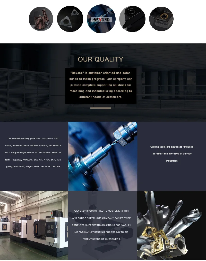 1. Наша компания в основном производит держатель токарного инструмента, карбидные вставки, резьбонарезные вставки, торцевые фрезы, кран и U дрель.2. Действующая для основных брендов ЧПУ Вставки: Mitsubishi, Taegutec, Korloy, ZCC.CT, Kyocera, Tungaloy.3. Если вы не можете найти товар в магазине, пожалуйста, свяжитесь с нами, мы ответим Вам в ближайшее время.4. Если у вас есть какие-либо проблемы в покупке или использовании продукта, пожалуйста, дайте нам знать, и мы поможем вам решить.