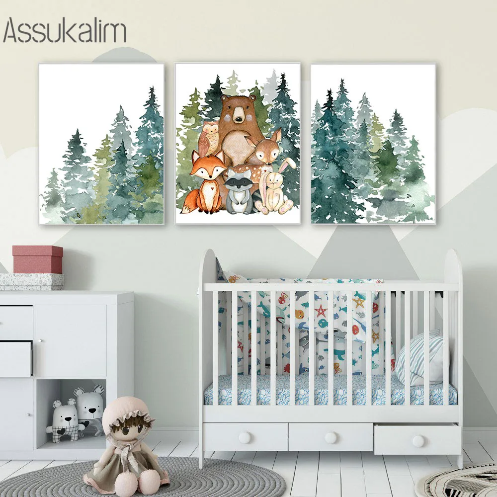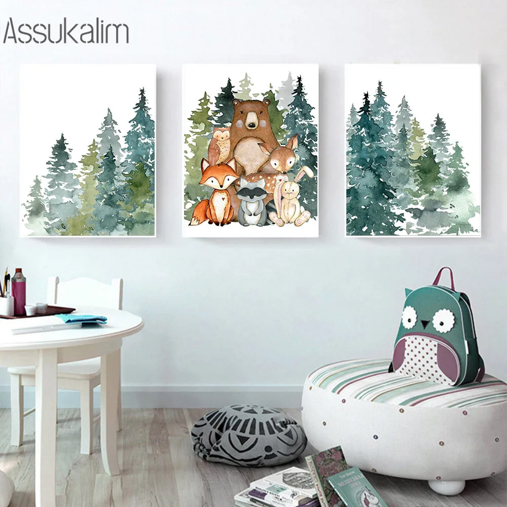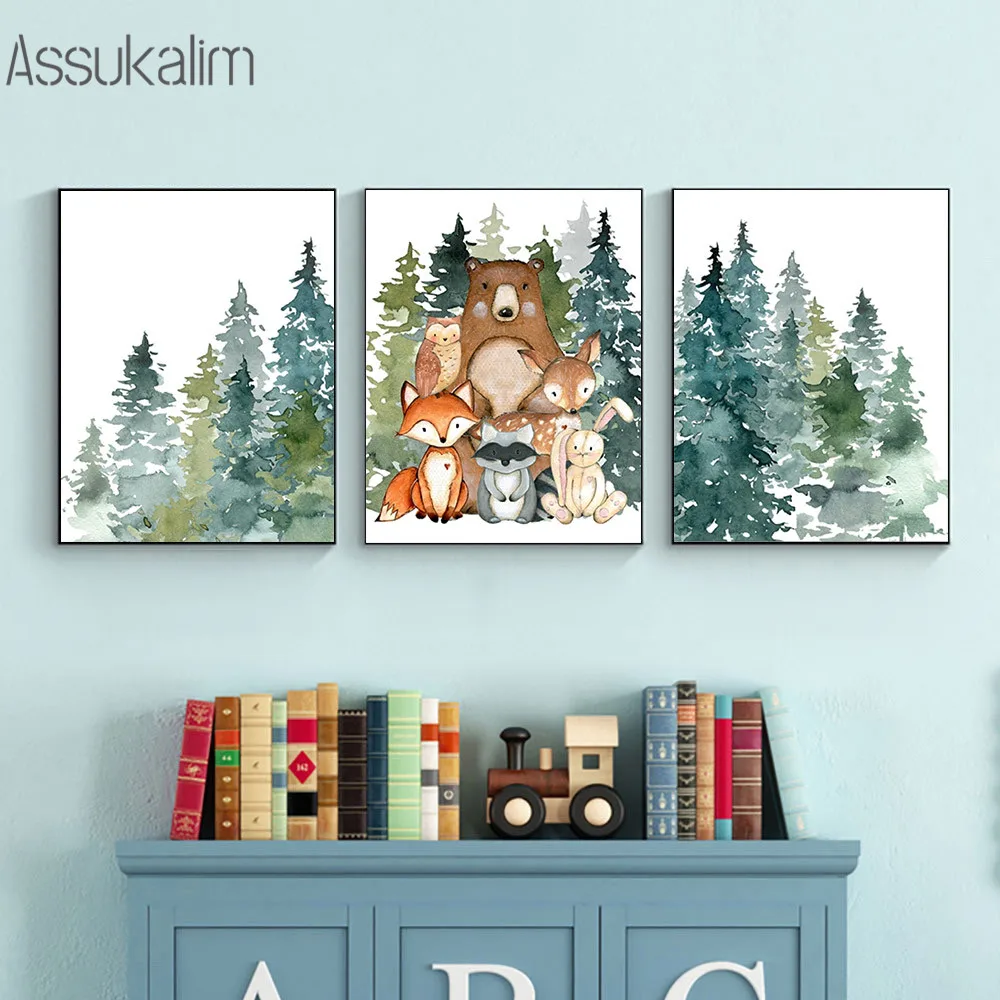 Лесной Животные Wall Art Холст Картины детская художественный принт лиса постер с изображением медведя Nordic Плакаты и принтами Детская комната украшения