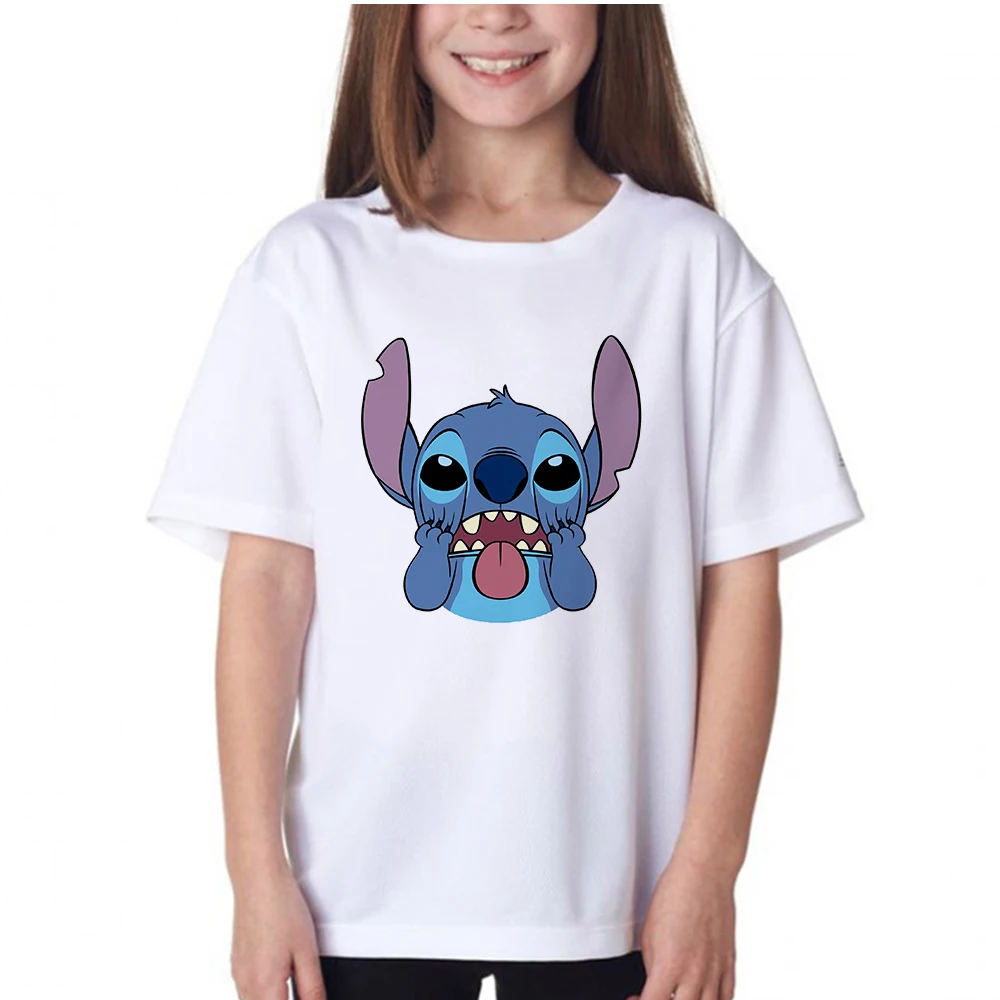 Футболка для мальчиков в стиле Харадзюку, модная летняя Удобная дышащая футболка для девочек с принтом из мультфильма Лило и Ститч и Дисней