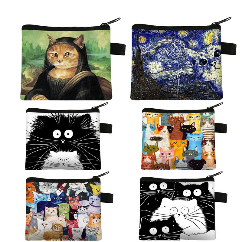 Новые милые кошельки для монет с принтом кошки, мини-кошелек для ме...