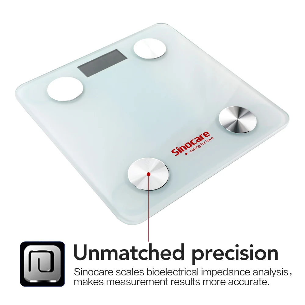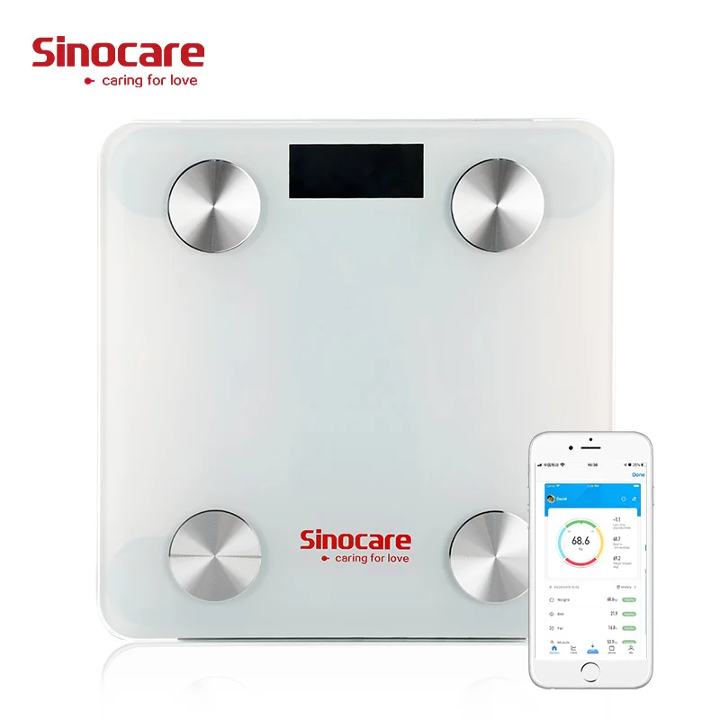 Bluetooth-весы SINOCARE оснащены четырьмя высокоточными датчиками и четырьмя электродами для обеспечения быстрого и точного анализа состава тела. Поверхность изготовлена из закаленного стекла 5 мм; Дно изготовлено из качественного АБС-пластика.Синхронизируется с вашими любимыми приложениями для фитнеса, приложение OKOK синхронизирует данные с приложением Apple Health и Fitbit!