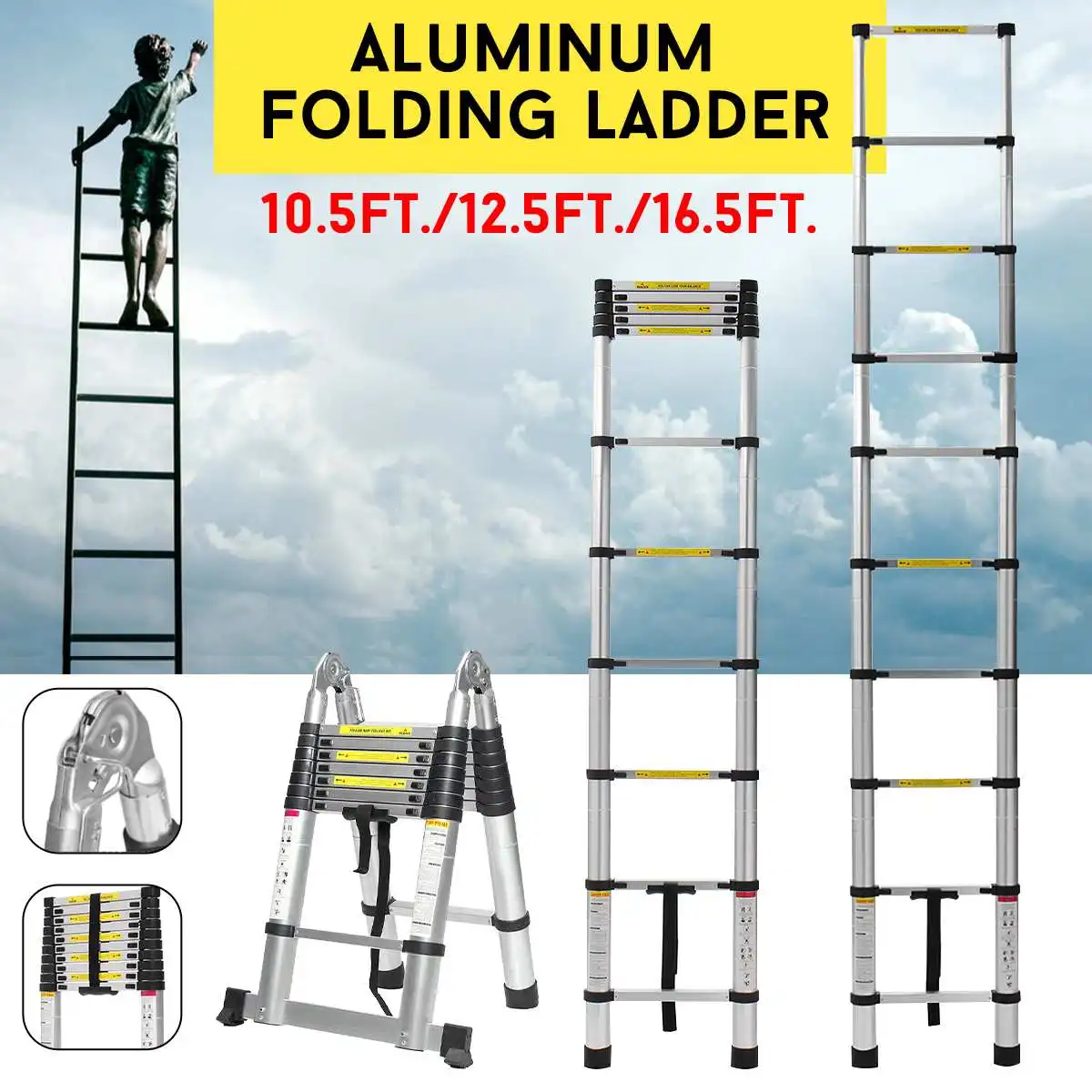 5-метровая складная телескопическая алюминиевая лестница, складная ...