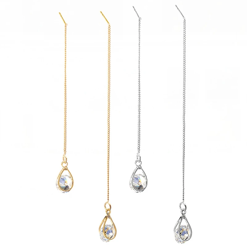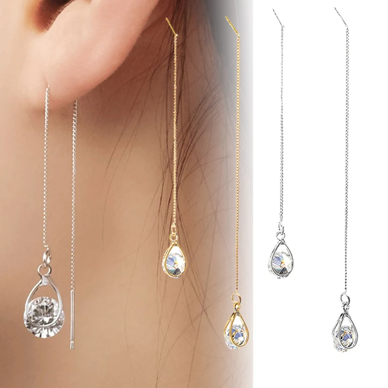 Серьги-гвоздики с кристаллами циркония на длинной цепочке, элегантн...