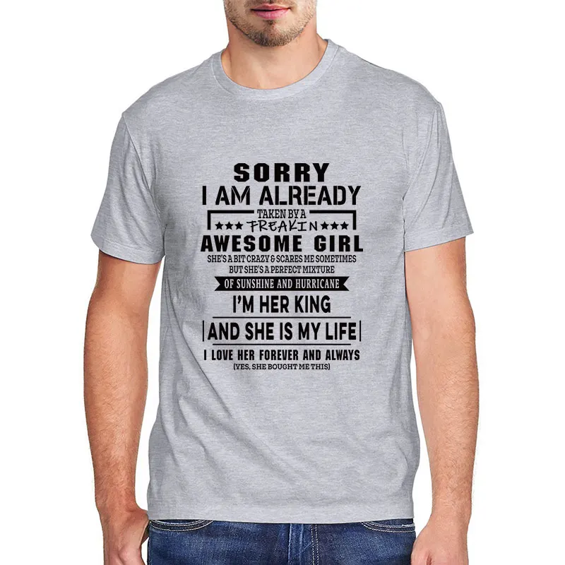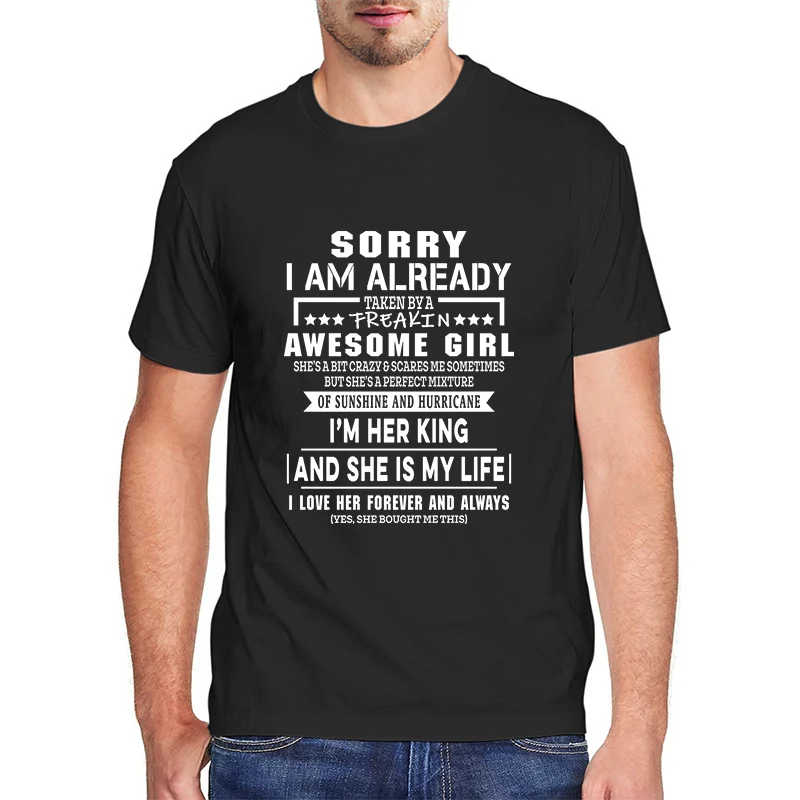 Забавная Футболка Harajuku yes im a spolied boyfriend, футболки, топы Sorry Im, уже взятые удивительной девочкой, Мужская графическая футболка, подарок на день Святого Валентина, 100 хлопок, высокое качество, Мужская одежда, летняя уличная одежда большого размера